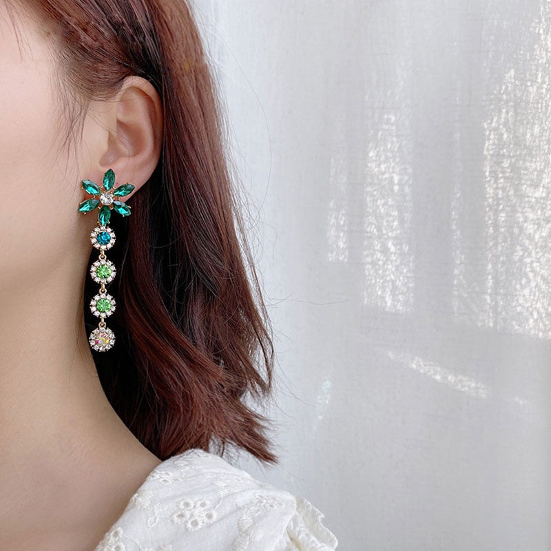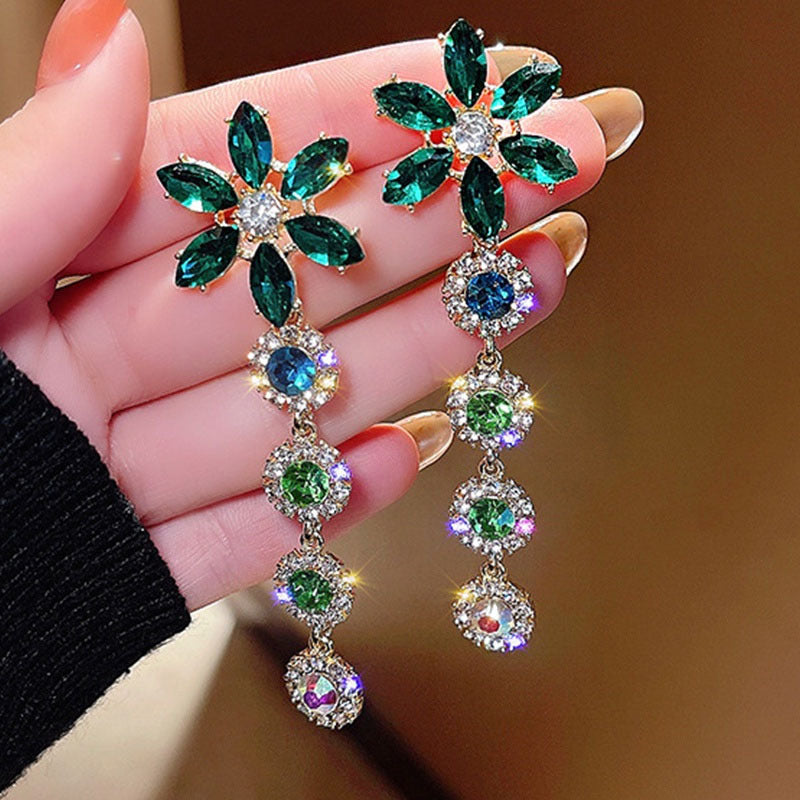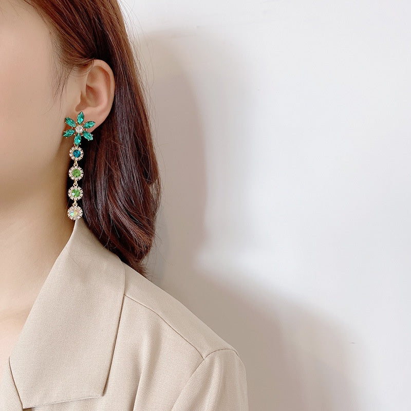 These unique retro style earrings feature long tassels and emerald synthetic gems, made of zinc alloy. A perfect gift for women.