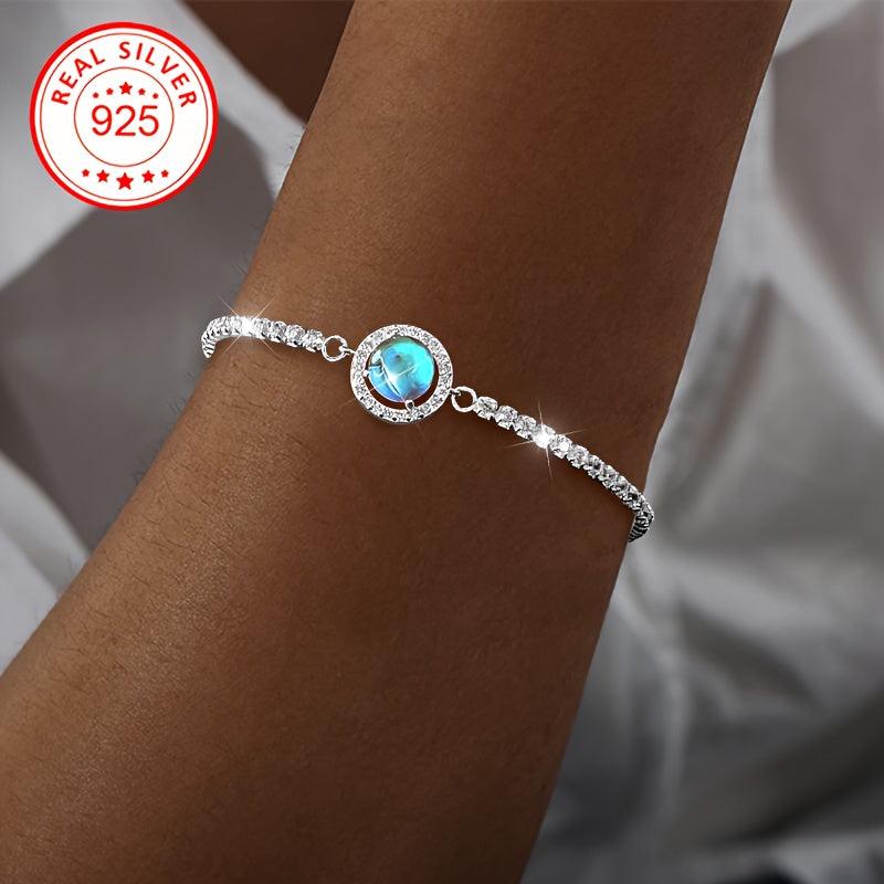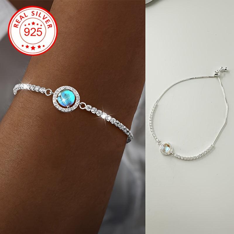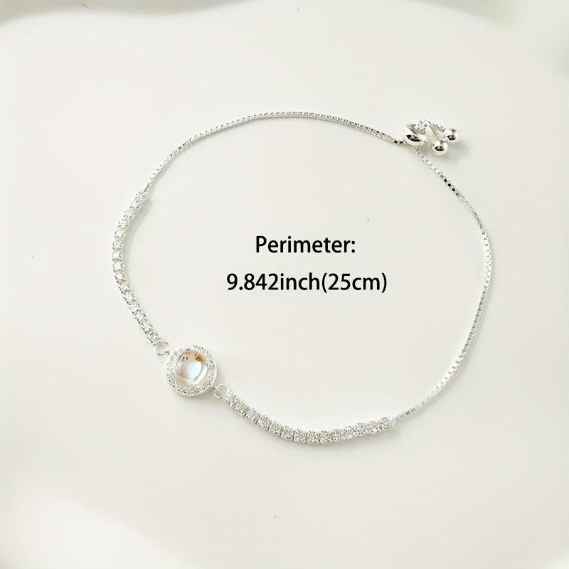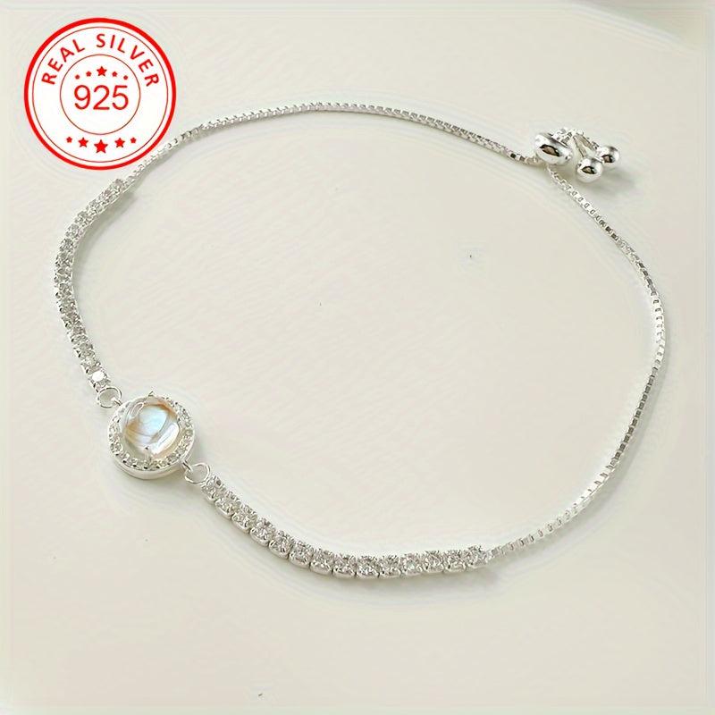 Add a touch of vintage glamour to your look with this stunning tennis bracelet. Crafted from 925 sterling silver, it features synthetic moonstone and cubic zirconia stones. The adjustable chain with expandable beads ensures a perfect fit.