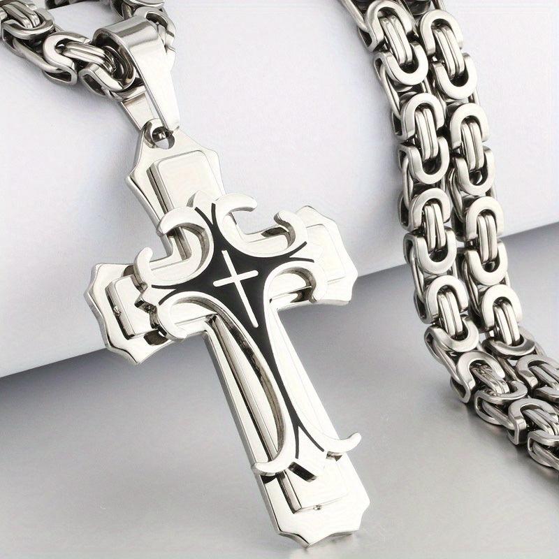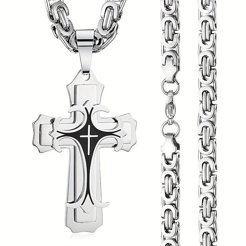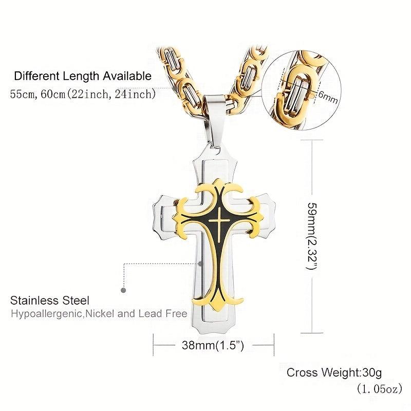 Elegant men's necklace with a multilayer design featuring a golden stainless steel cross pendant. Ideal for adding a stylish touch to any outfit.