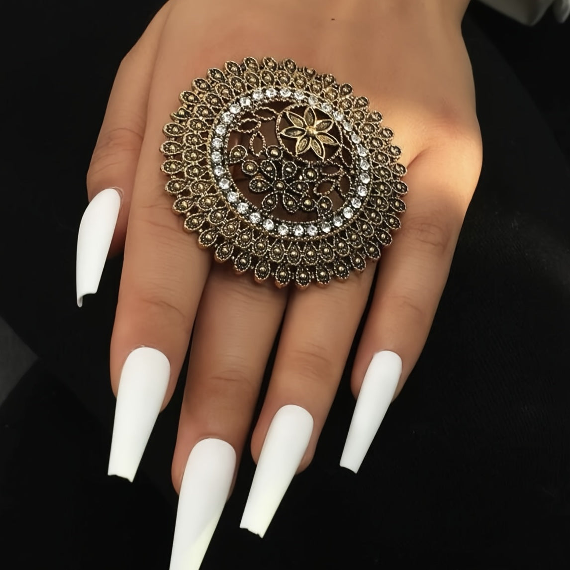 Add a touch of bohemian flair to your look with this adjustable vintage Indian ring. Perfect for holidays and special occasions.