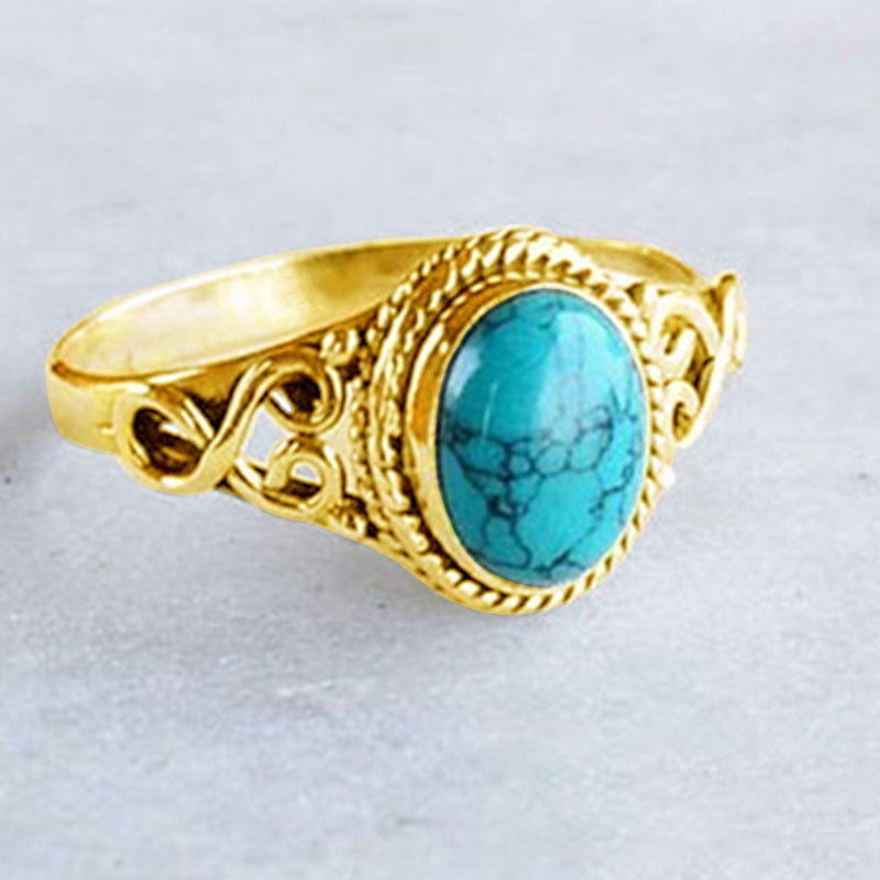 Elegant vintage ring with delicate carving craft and inlaid oval stone. Perfect for engagement, wedding, party accessory, or anniversary gift.