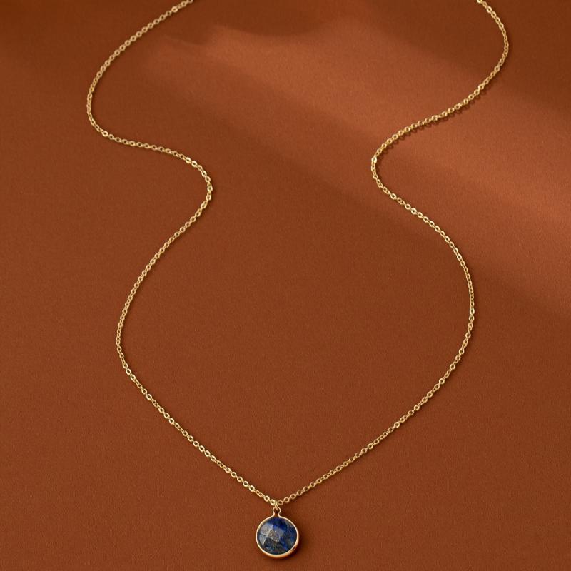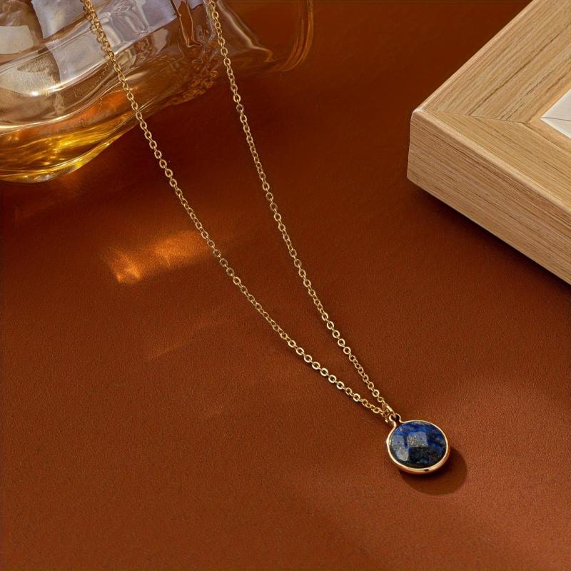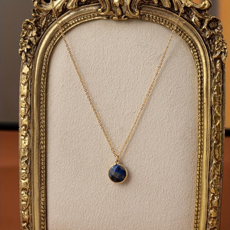 Elegant vintage lapis lazuli stone pendant necklace with plating for everyday wear or special occasions.