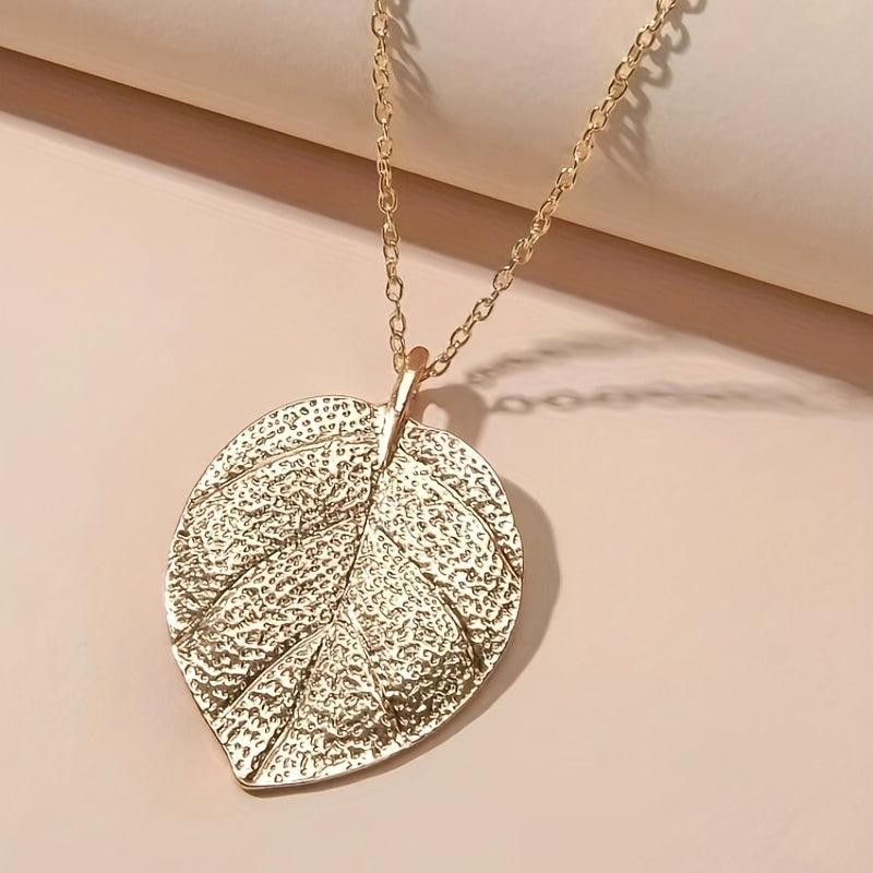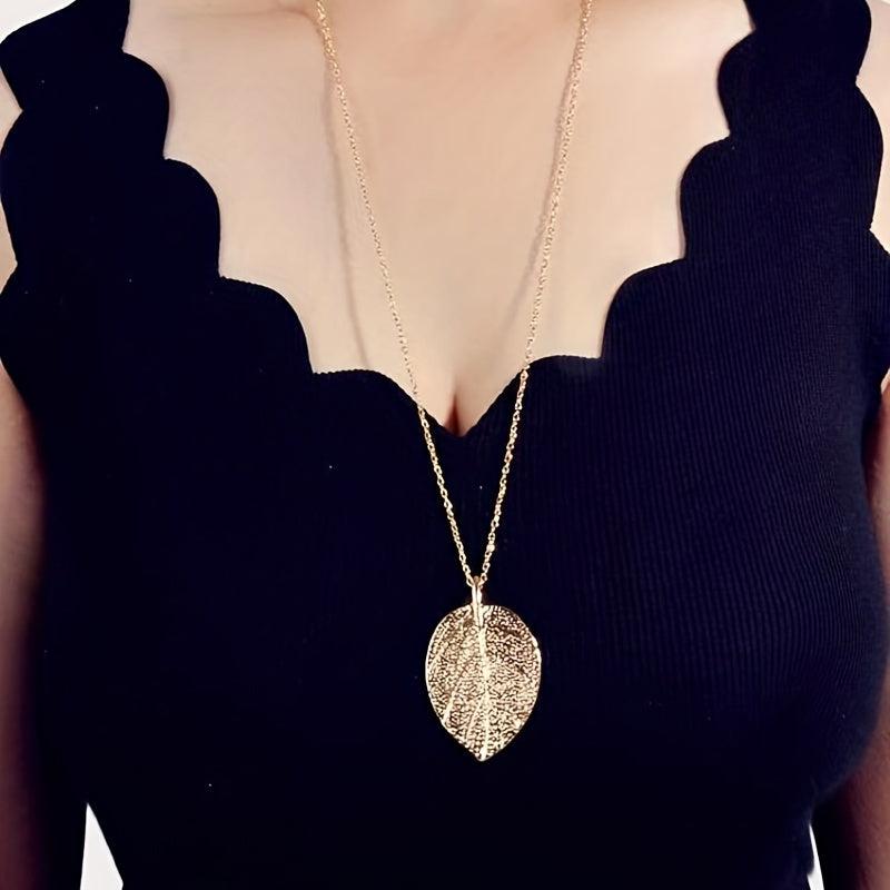 This fashionable vintage leaf pendant necklace is made of zinc alloy with no plating, perfect for daily wear or parties. It adds a touch of elegance to any outfit.