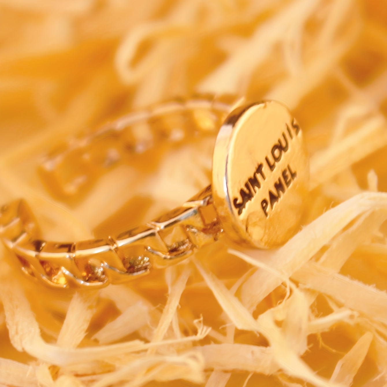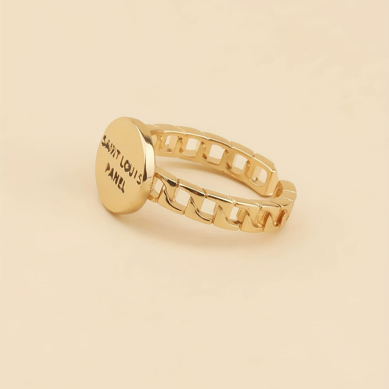 This elegant ring features a vintage letter carving with a chain structure design, perfect for evening parties or daily wear.