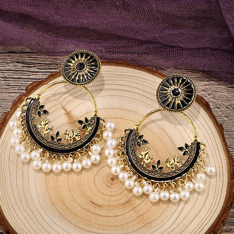 Unique and stylish vintage moon alloy earrings, perfect for a birthday party or as a gift. Exaggerated ethnic style with a hollow design.