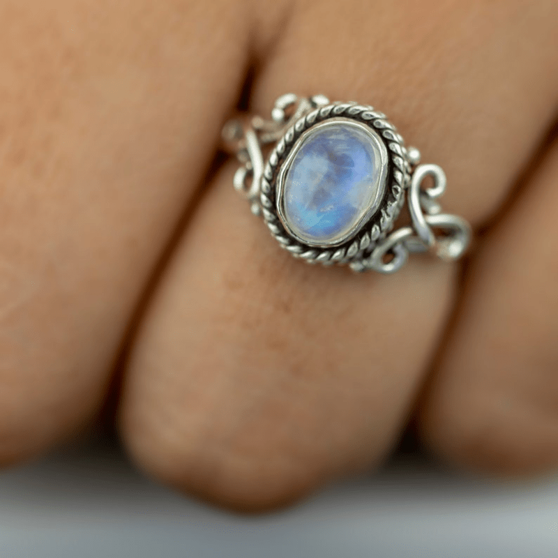 Add a touch of elegance to your daily outfits or parties with this vintage ring featuring a moonstone inlaid thread shape. It's a perfect birthday gift for your loved one.