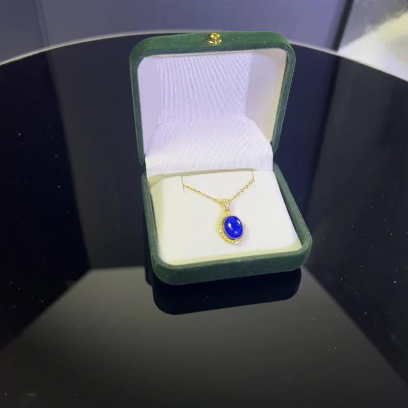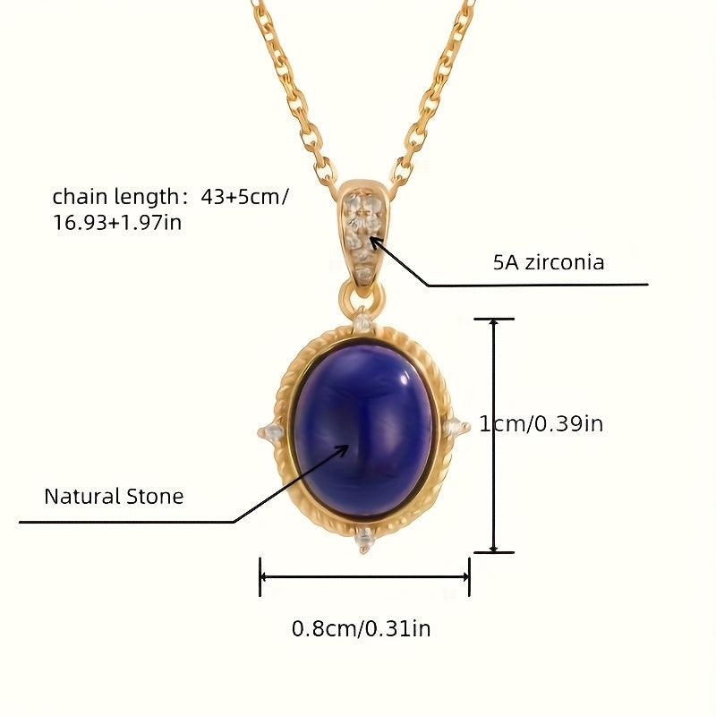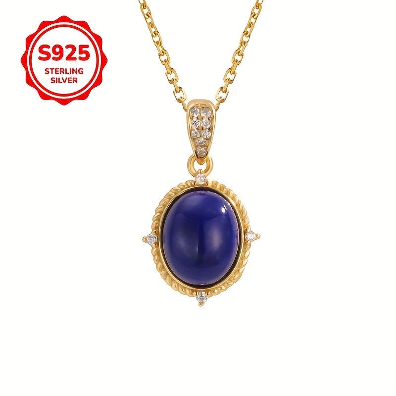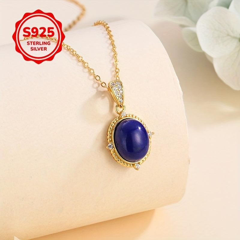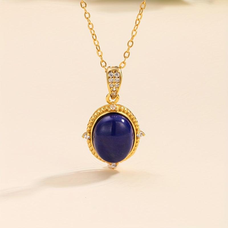 This stunning necklace features an egg-shaped lapis lazuli pendant on a 14K golden plated S925 sterling silver chain. Ideal for gifting to mothers on any occasion.