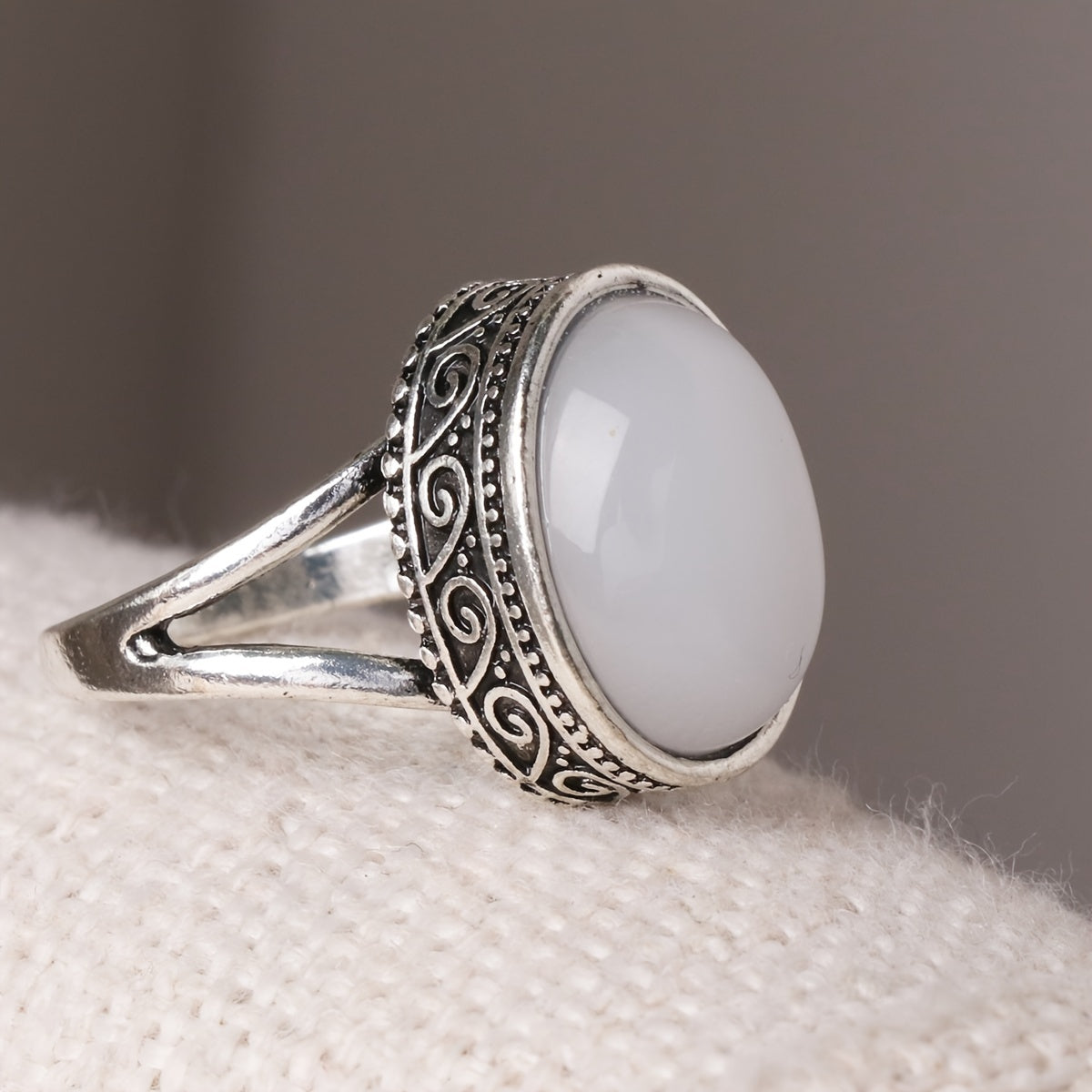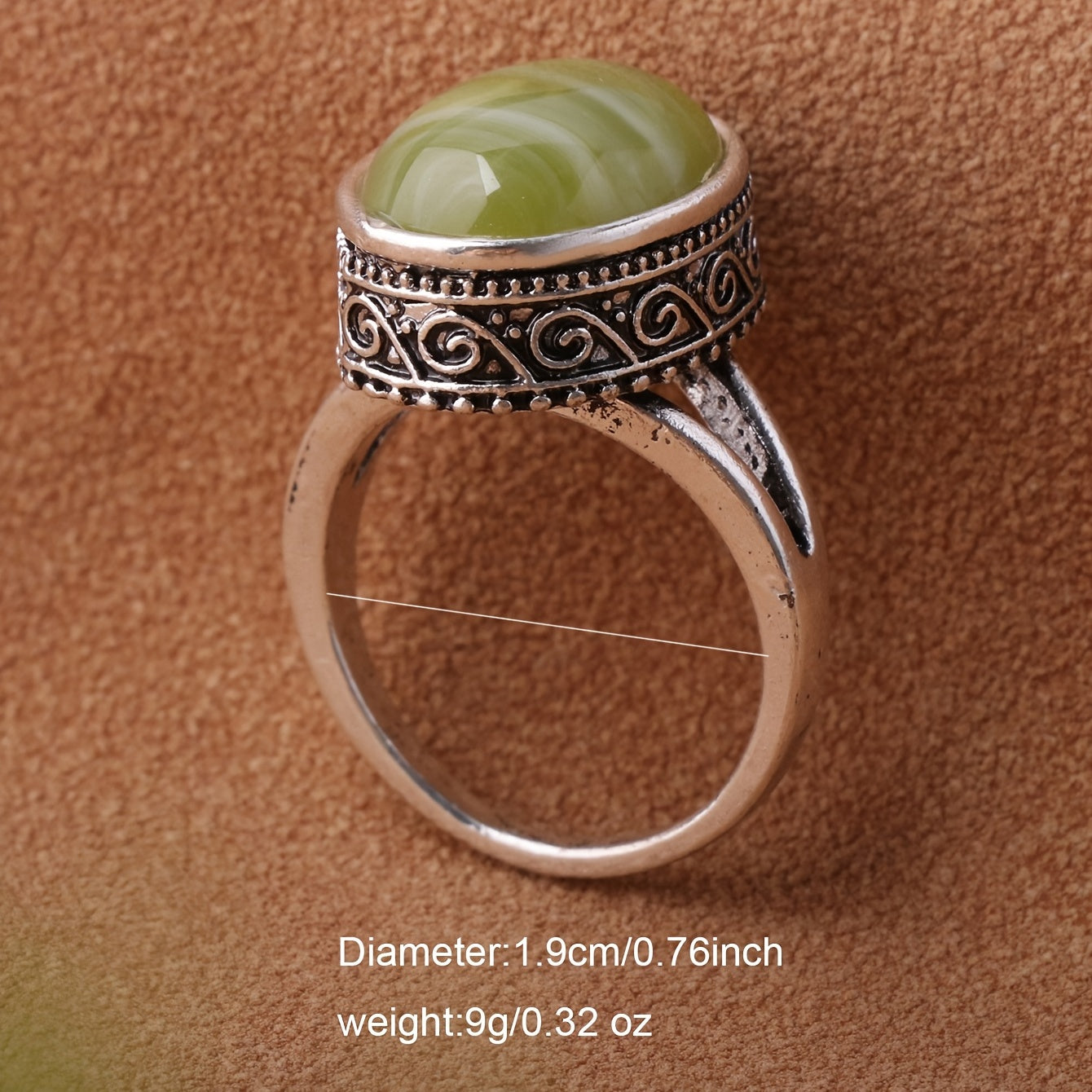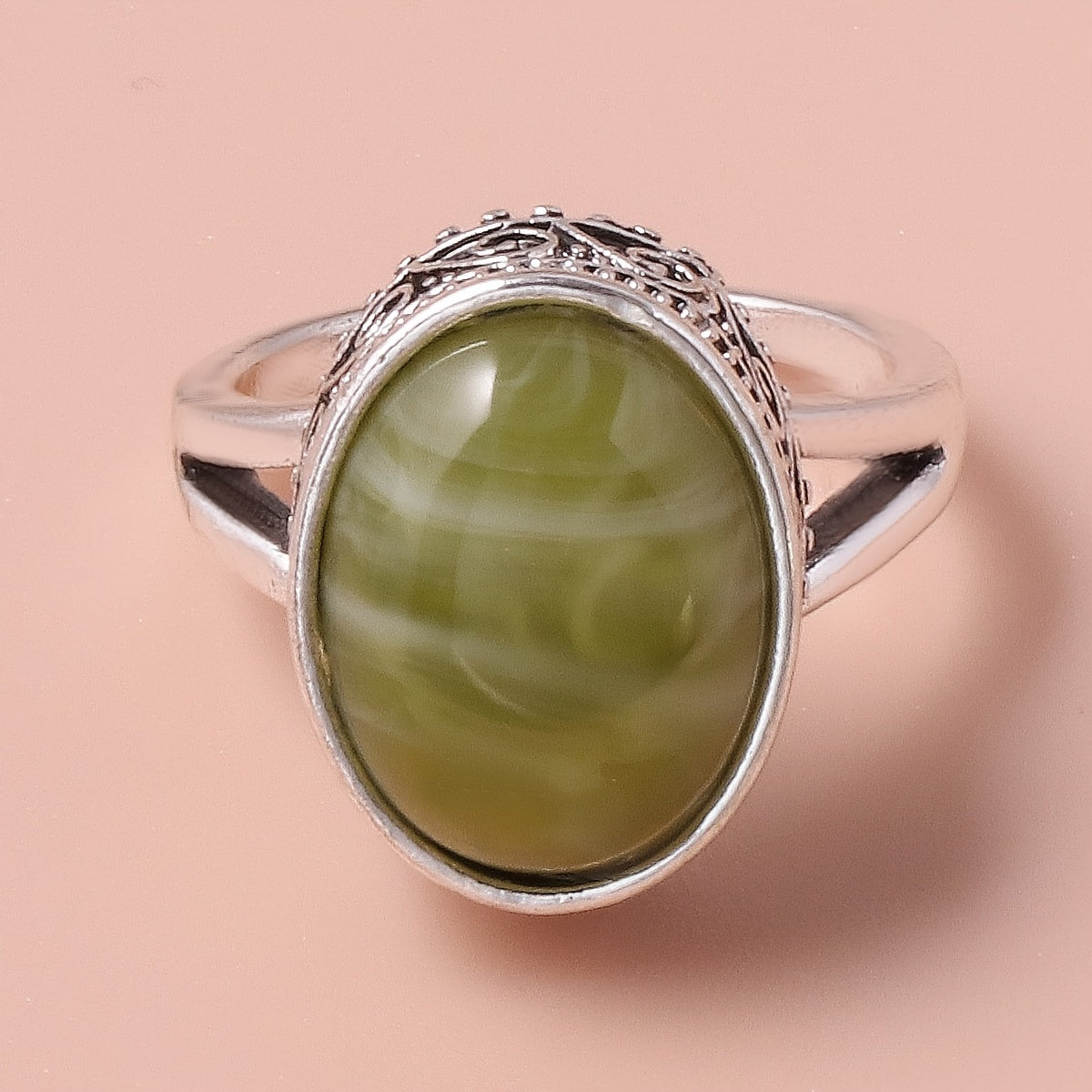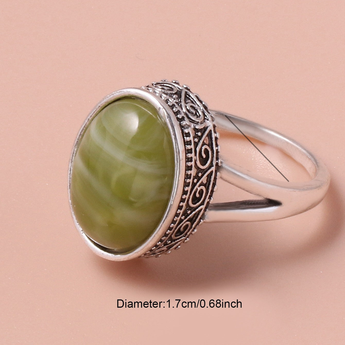 Add a touch of vintage glamour with this oval resin ring featuring an artificial gem stone. This retro-inspired jewelry piece is a perfect accessory for women.