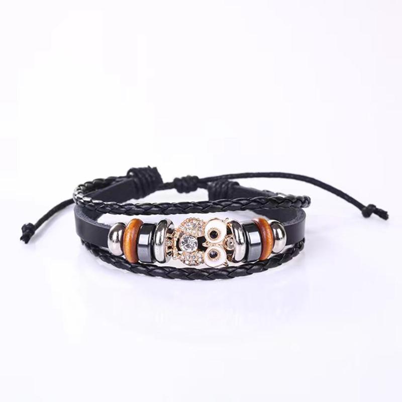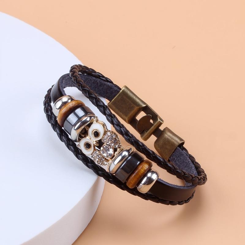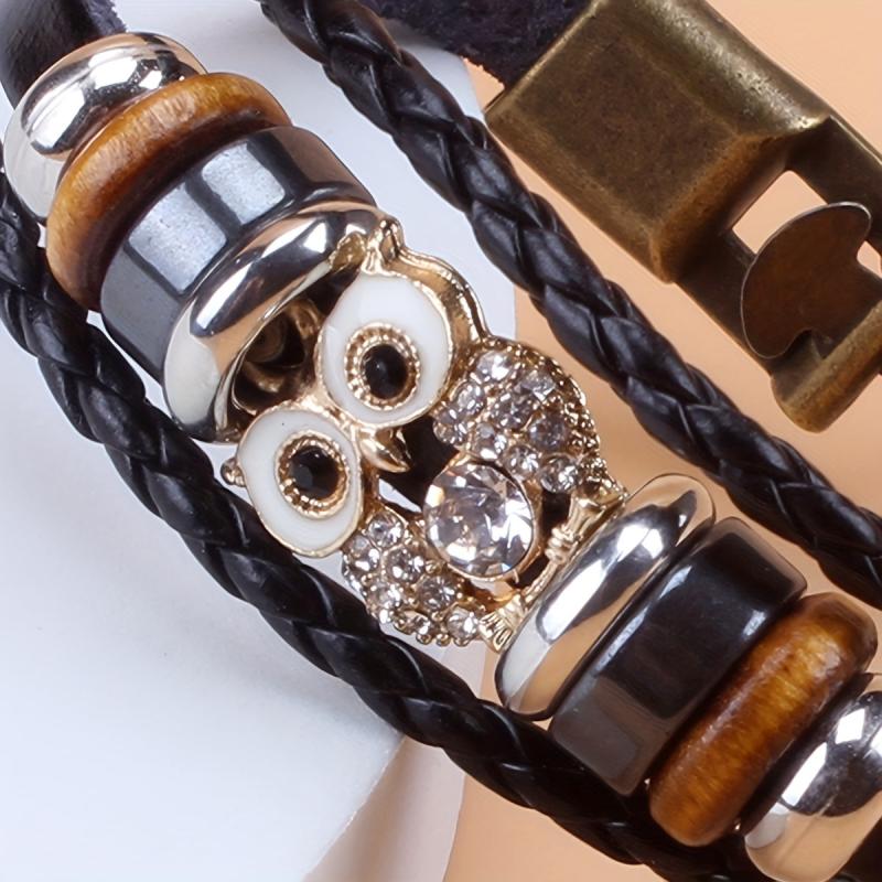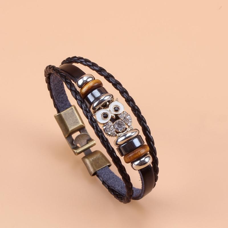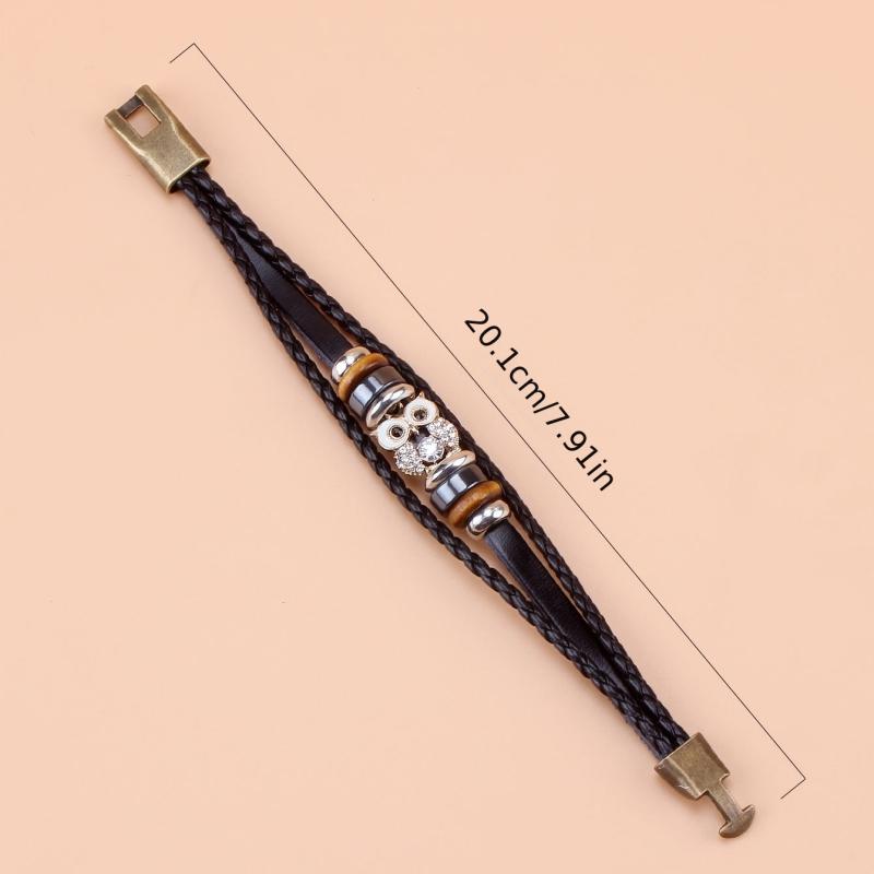 Add a touch of vintage style to your hand jewelry collection with this owl PU leather bracelet featuring zircon accents.