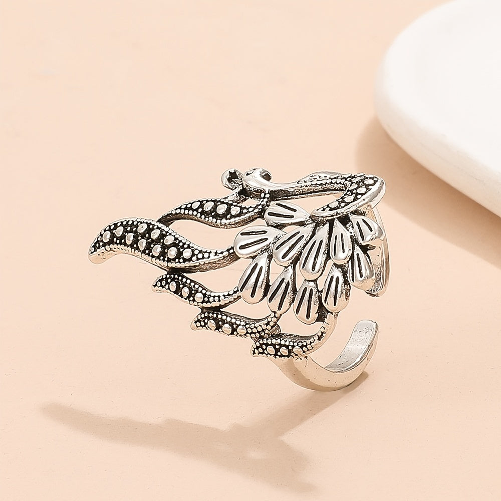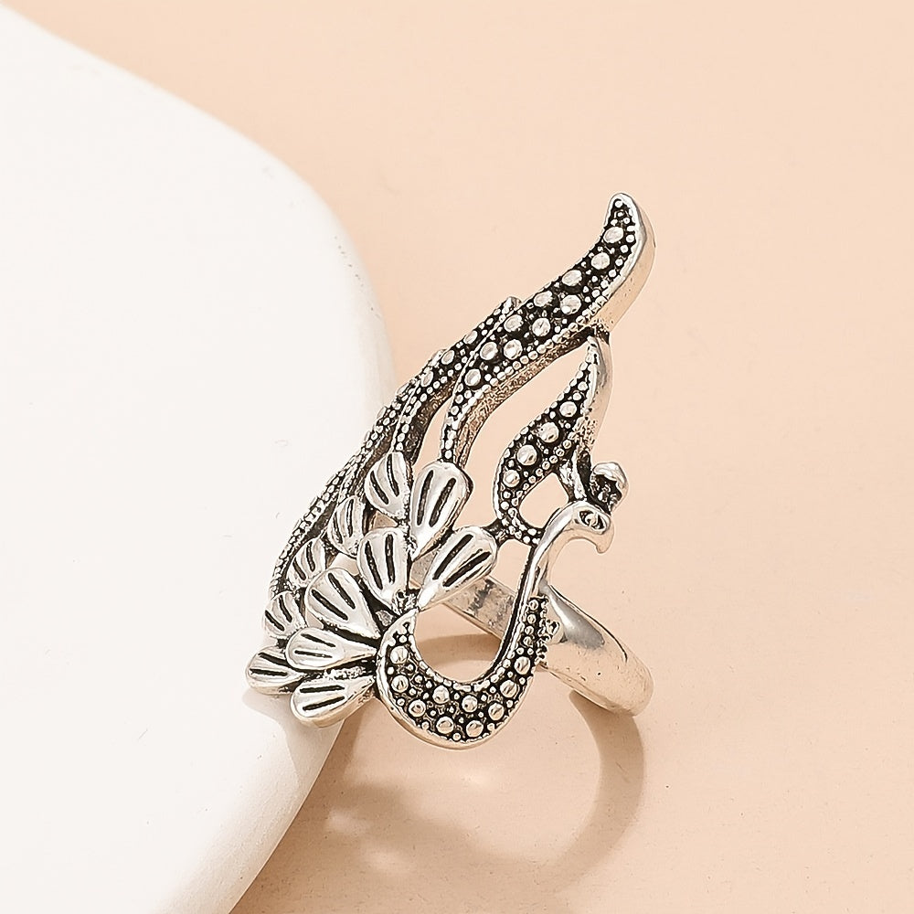 Add a touch of elegance with this vintage peacock open adjustable ring. Made with 14K plating, this stunning hand jewelry is perfect for women who love unique accessories.