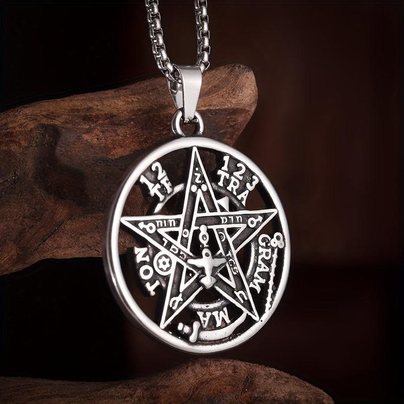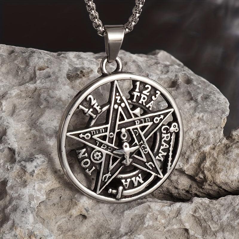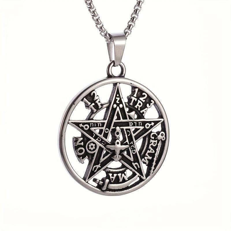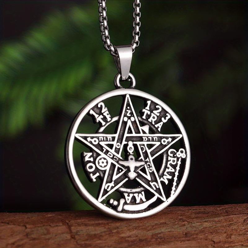 This necklace features a vintage witchcraft pentagram pendant crafted from stainless steel. It serves as a powerful amulet for men and women.