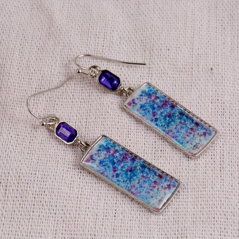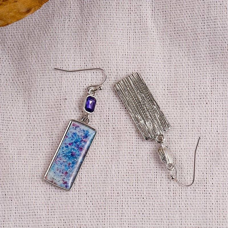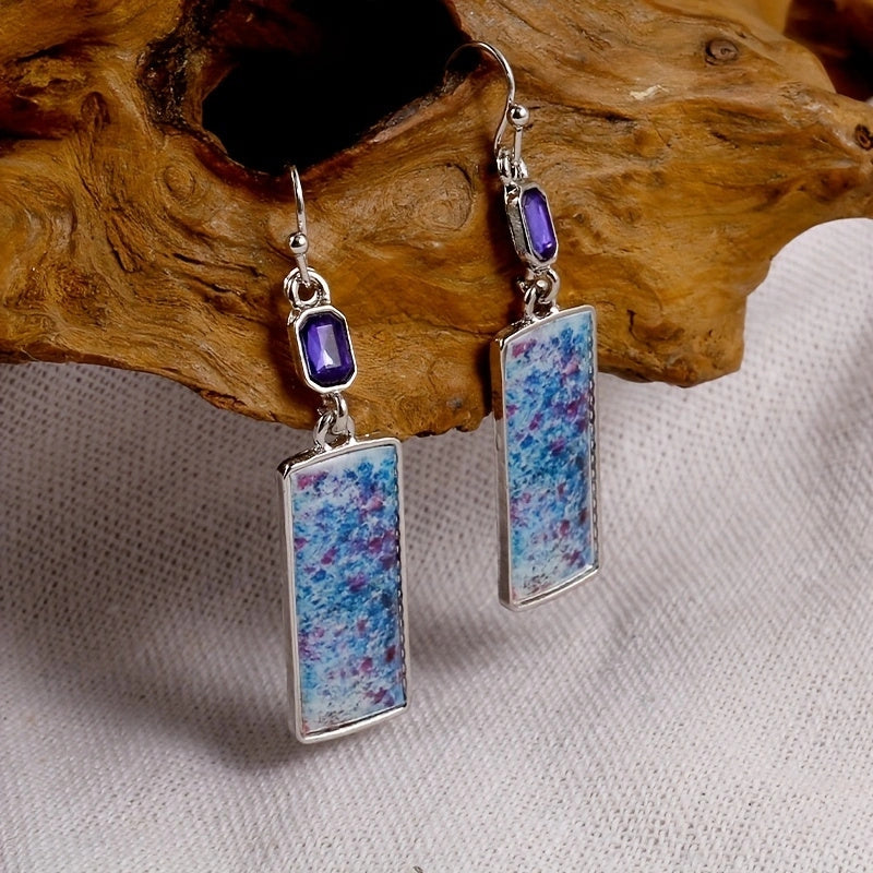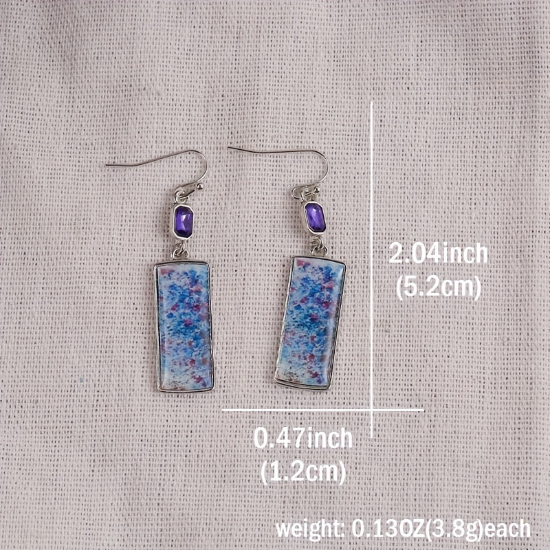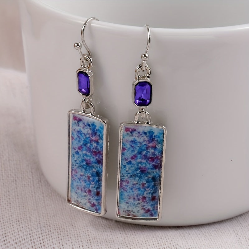 These vintage-style earrings feature synthetic gemstones and a minimalist design. They are made of zinc alloy with a silver plating, perfect for adding a touch of boho style to your daily casual outfits.