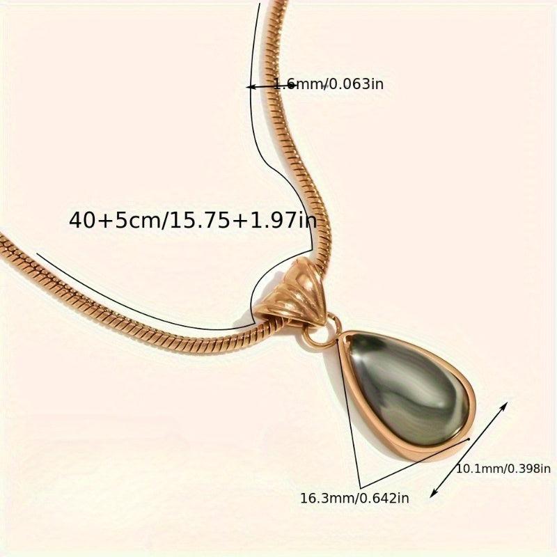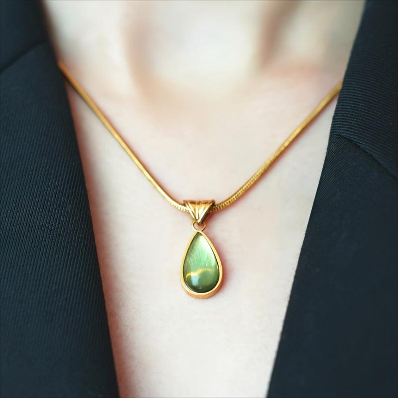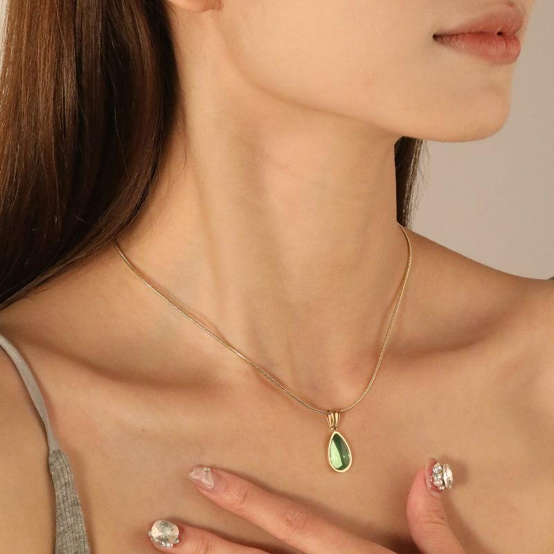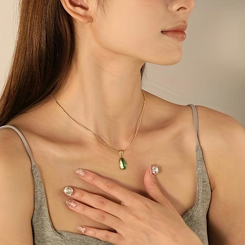 Stunning vintage-inspired pendant necklace featuring a rhinestone drop design with green and clear crystals. Made from stainless steel with golden plating, this French-inspired clavicle chain is perfect for daily wear.