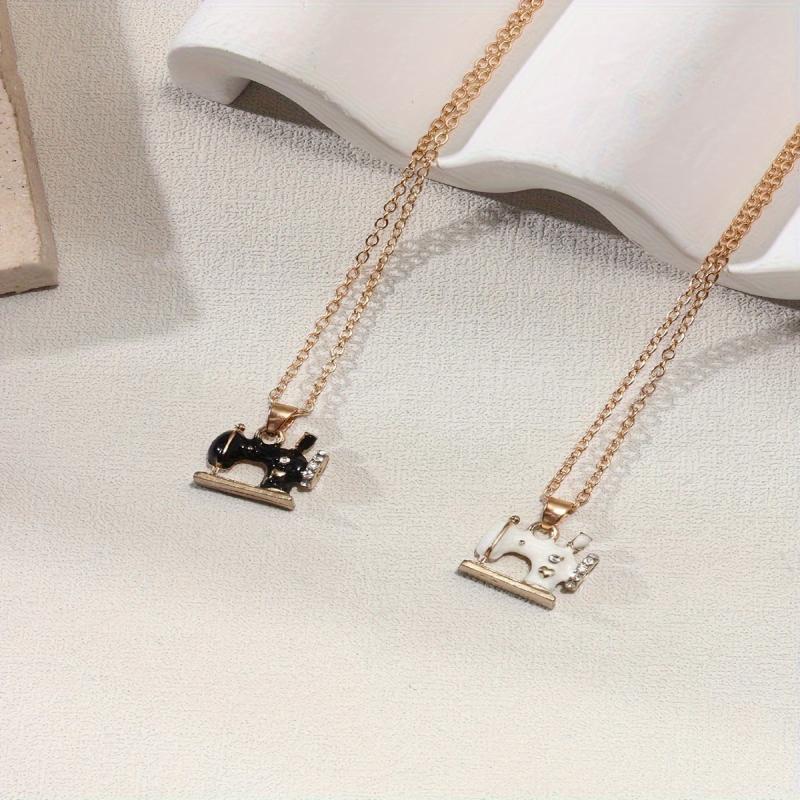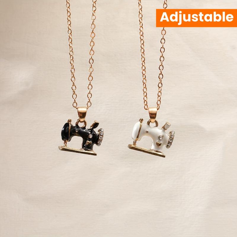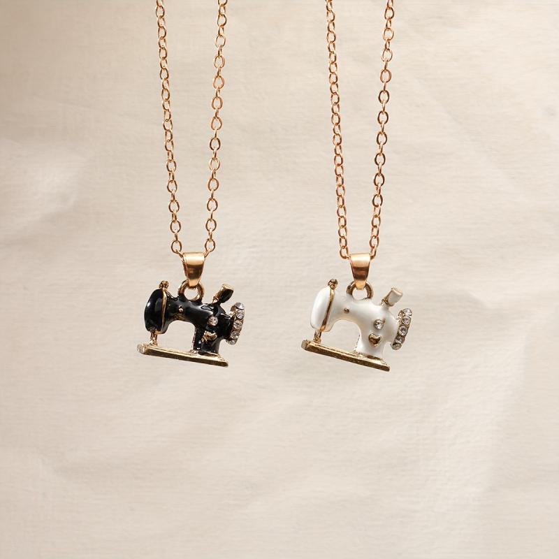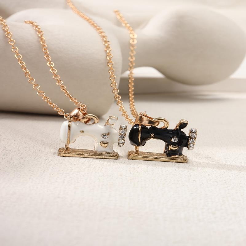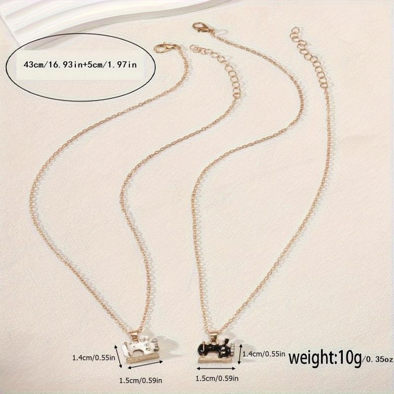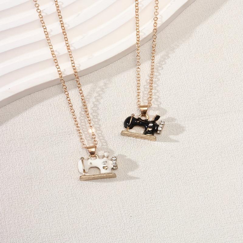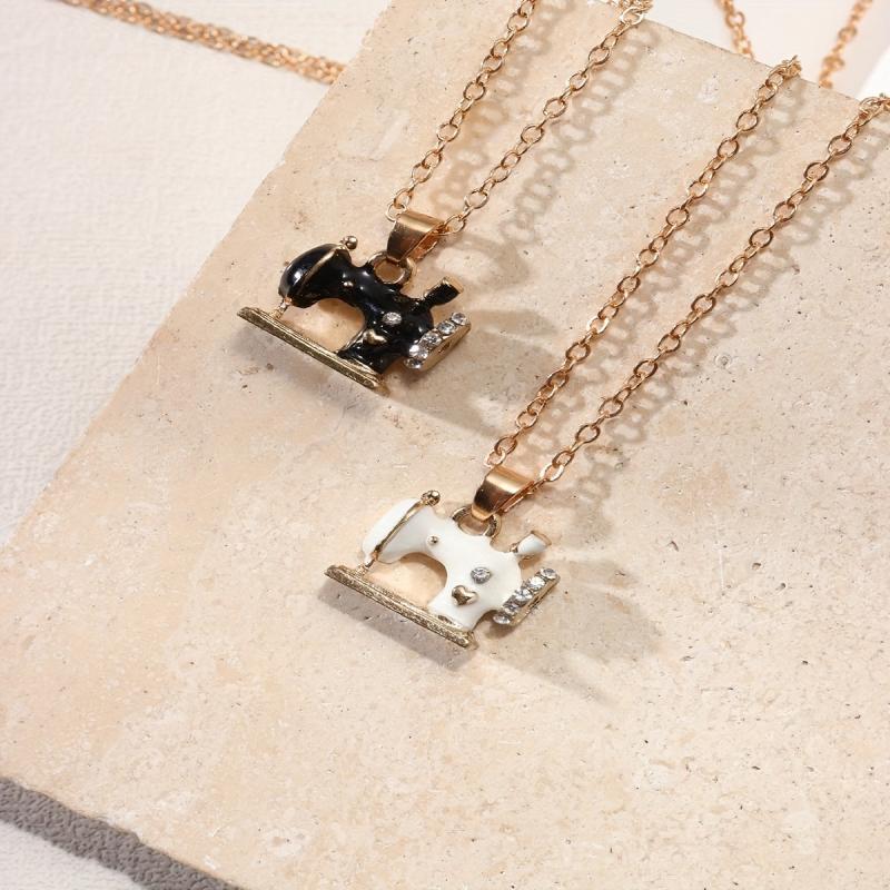 This set includes 2pcs of adjustable vintage rhinestone sewing machine pendant necklaces, perfect for women who love unique jewelry pieces.