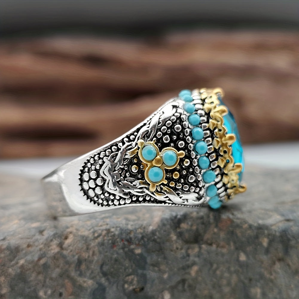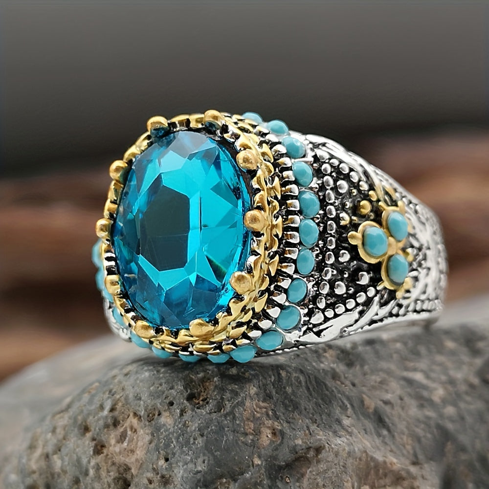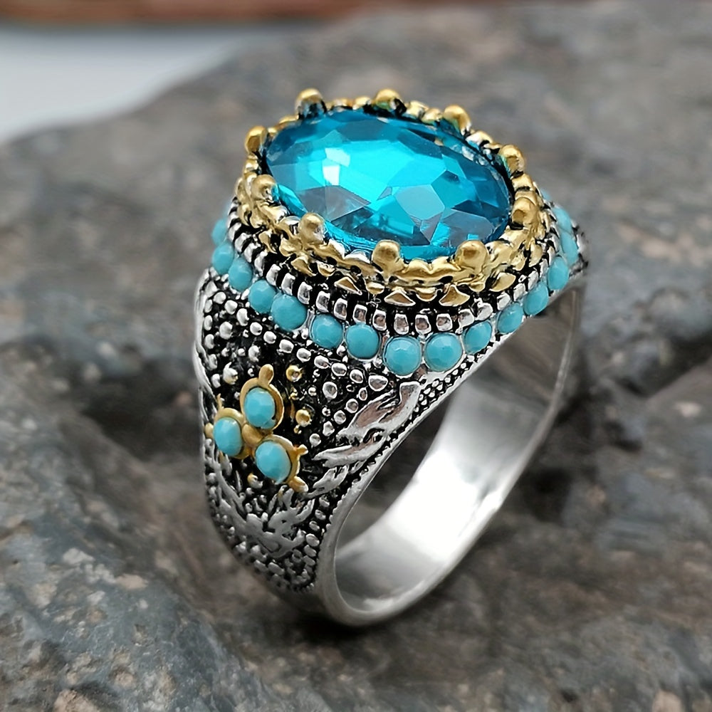 This vintage ring features exquisite craftmanship with arge zircon inlay, perfect for anniversary and birthday gifts. Ideal for evening parties and special occasions.