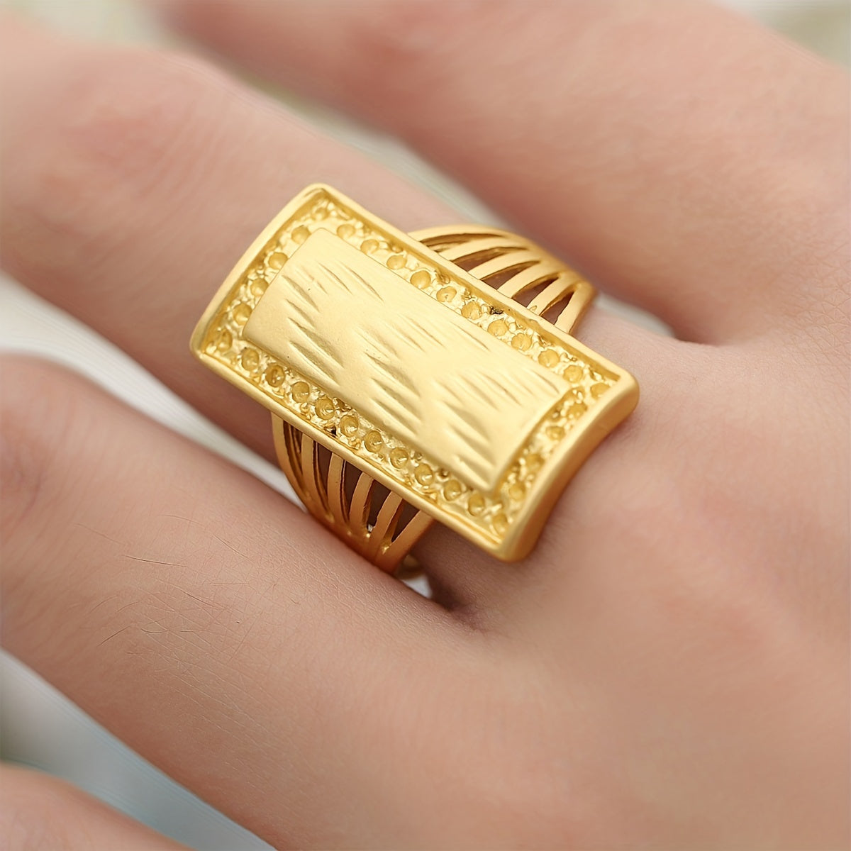 Elegant vintage royal ring with 18k gold plating, rectangular shape, and cut surface. A perfect gift for anniversary, birthday, or Christmas decoration.
