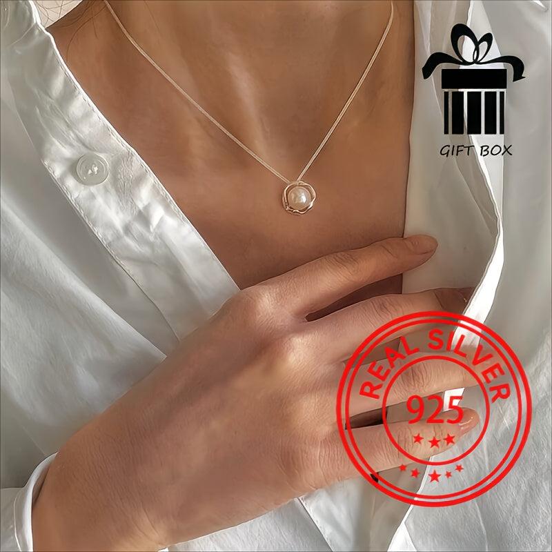 Elegant and minimalist collarbone chain made of hypoallergenic S925 sterling silver with a French high-end feel. Features a pearl pendant for a touch of sophistication.