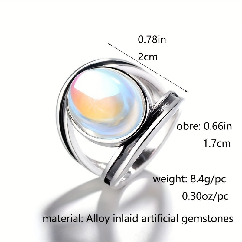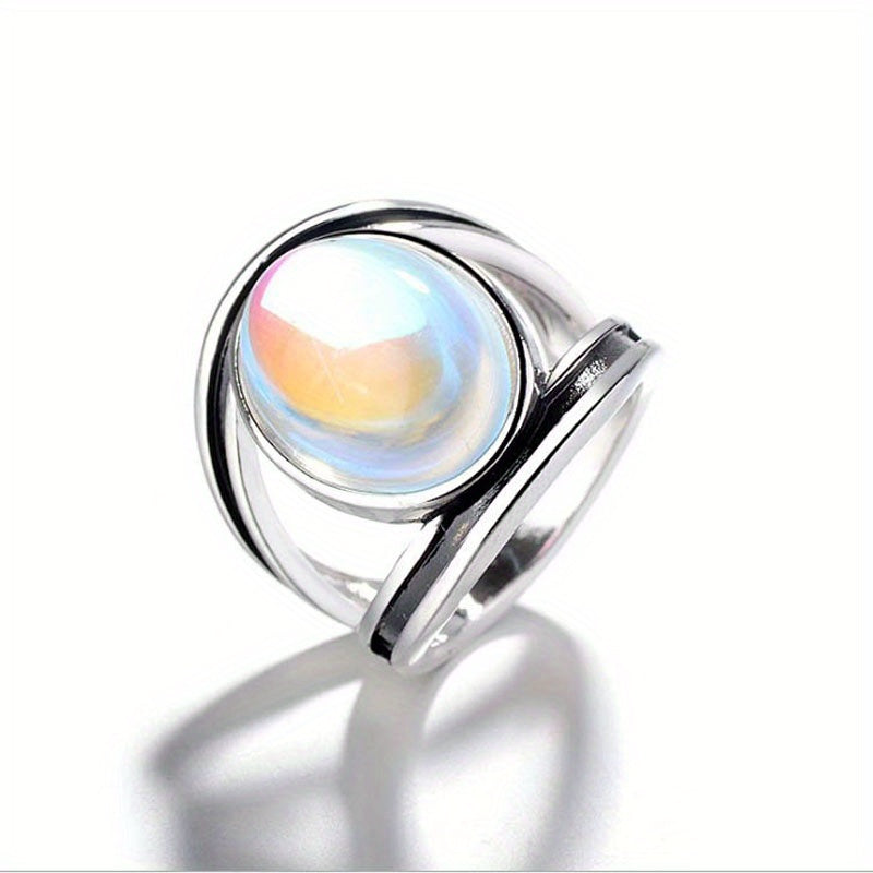This stunning ring features a colorful moonstone set in a silver plated band. Perfect for adding a touch of boho style to any outfit. Makes a great gift for Mother's Day or a birthday.