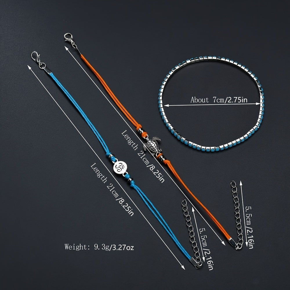 This anklet set features a sea turtle shape pendant and is perfect for adding a bohemian touch to your outfit. It includes 3 multilayer ankle chain bracelets that are adjustable to fit comfortably.