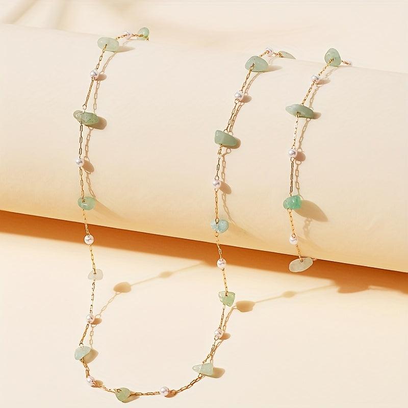 Elevate your look with this elegant necklace set featuring artificial crystal stones. The perfect accessory for any outfit.