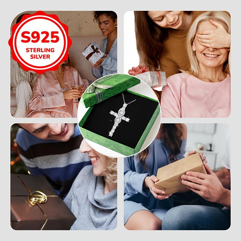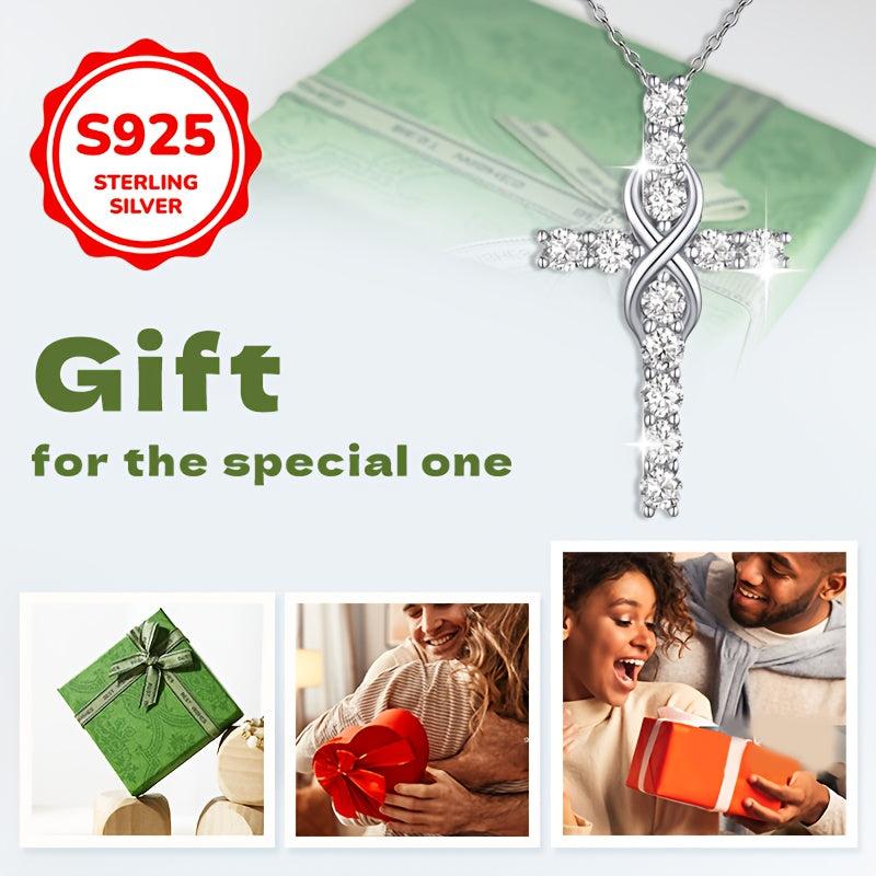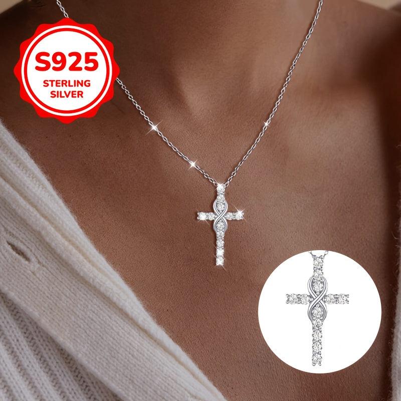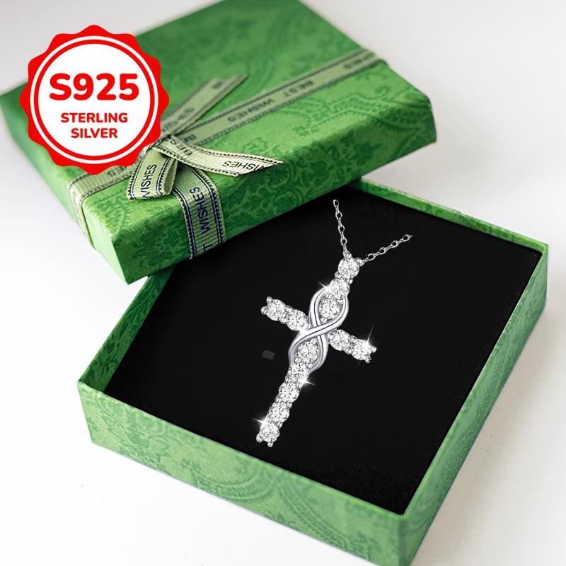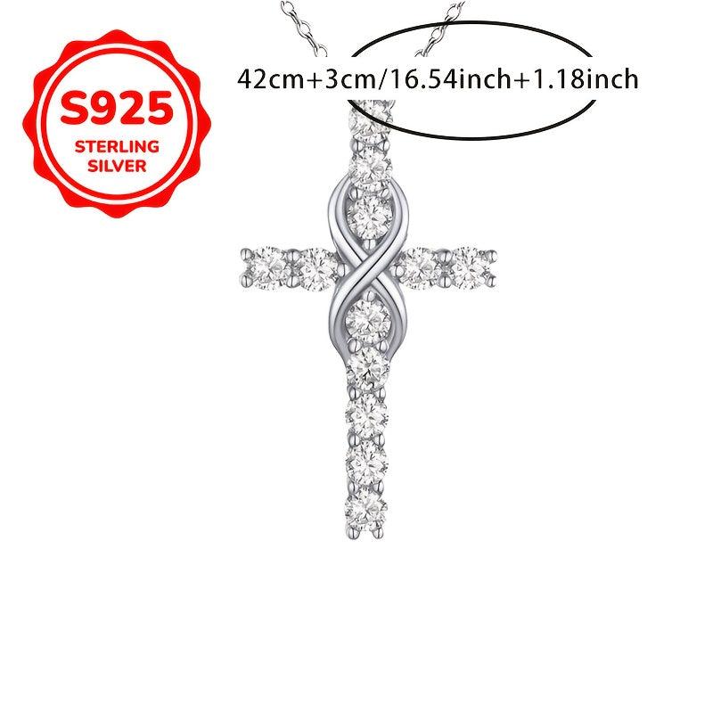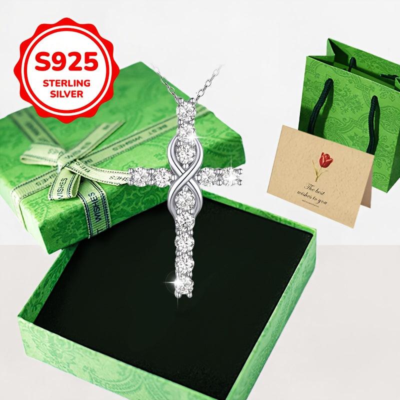 This sterling silver pendant necklace features a Greek cross design adorned with synthetic cubic zirconia for a touch of elegance. Perfect for Valentine's, Mother's Day, or wedding season gifts.