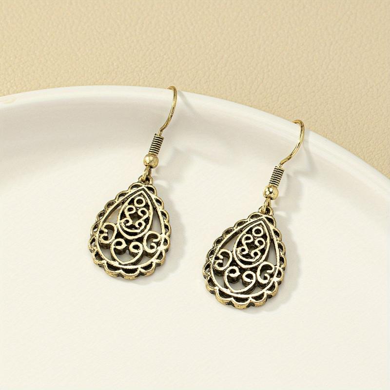Add a boho touch to your look with these stylish earrings featuring a vintage design and water drop shape pendant. Perfect for accessorizing any outfit.