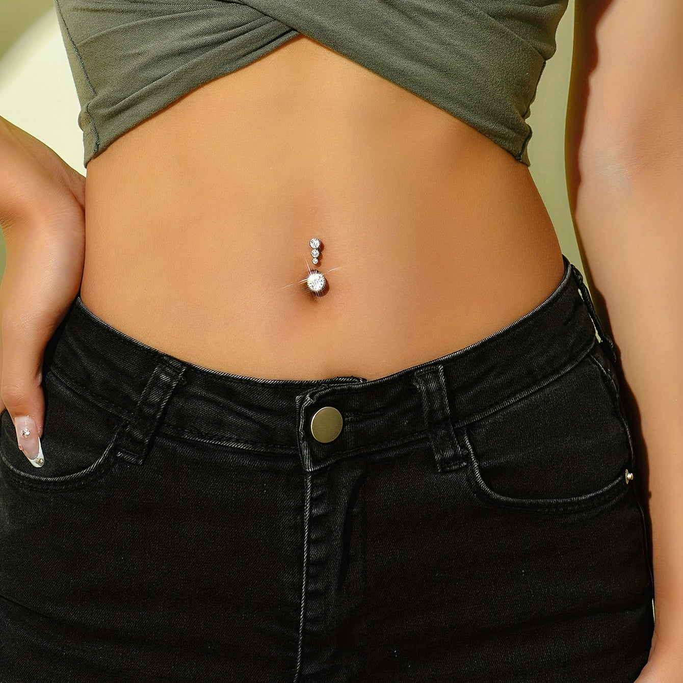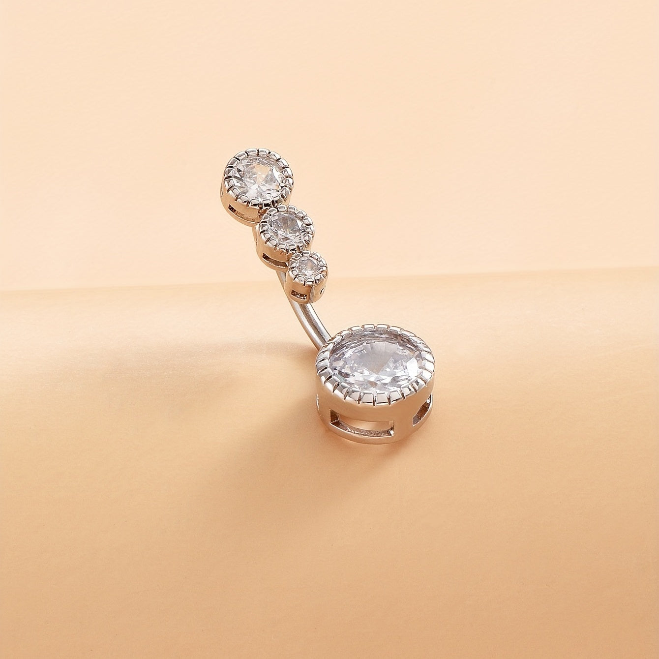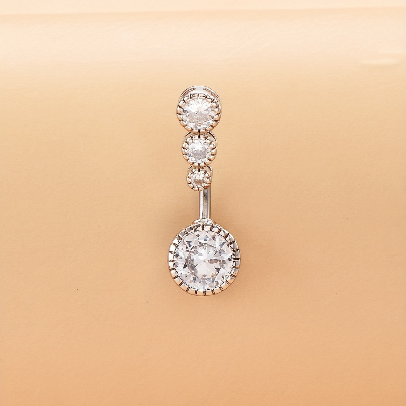 Elegant belly button ring with round zircon stone in vintage style. Adds sparkle and glamour to your look. Eye-catching body jewelry for women.