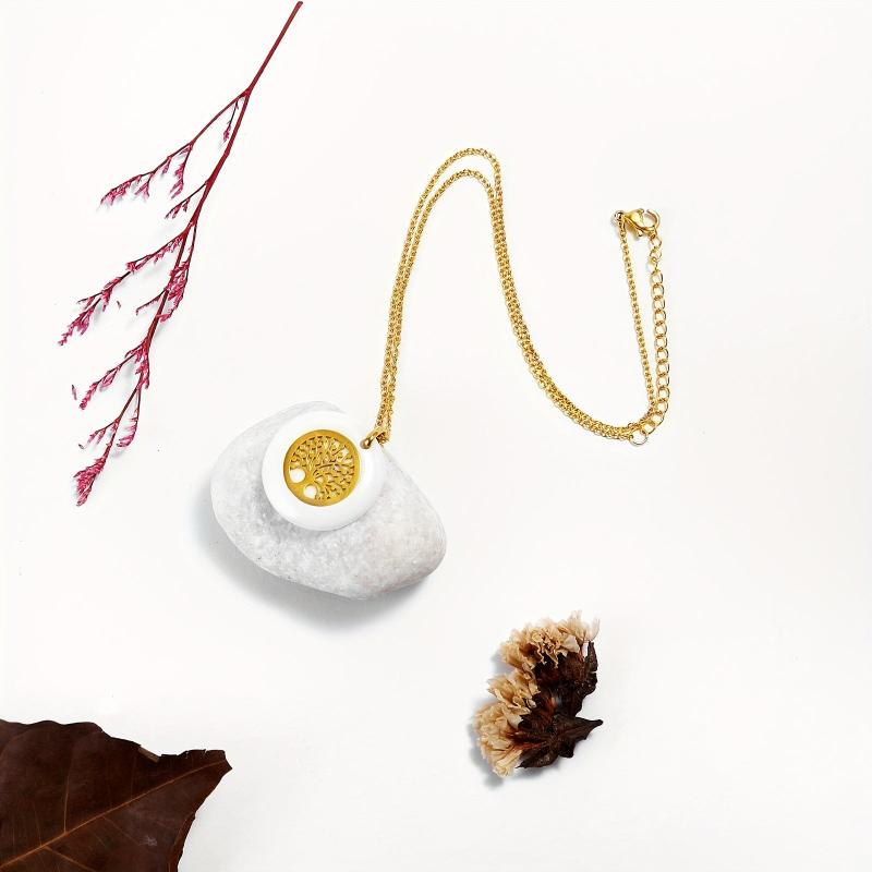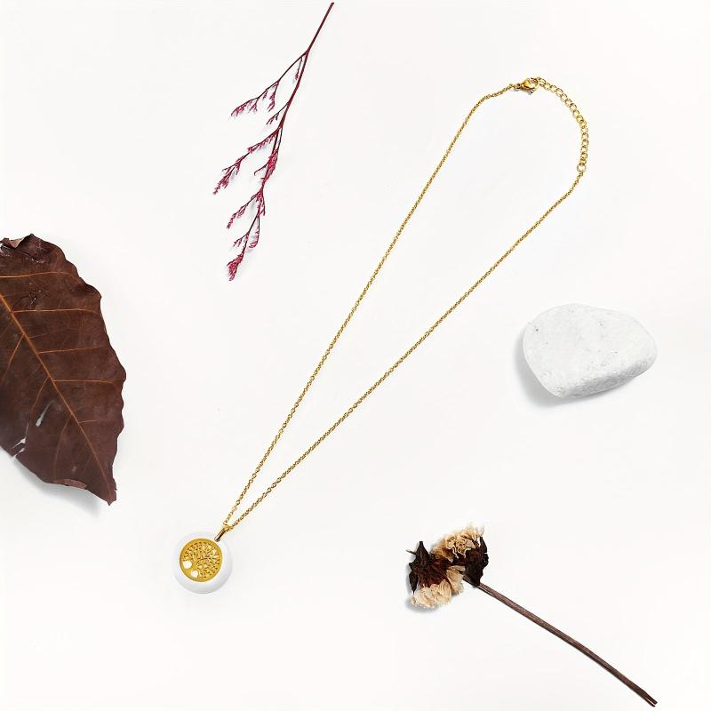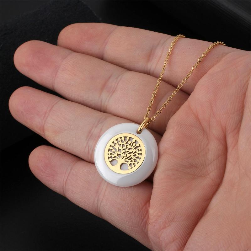 This beautiful Tree of Life necklace features a ceramic and stainless steel pendant with a golden tone finish. It makes a perfect everyday jewelry gift for Christmas, birthdays, and anniversaries.
