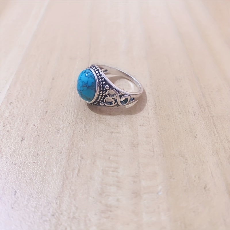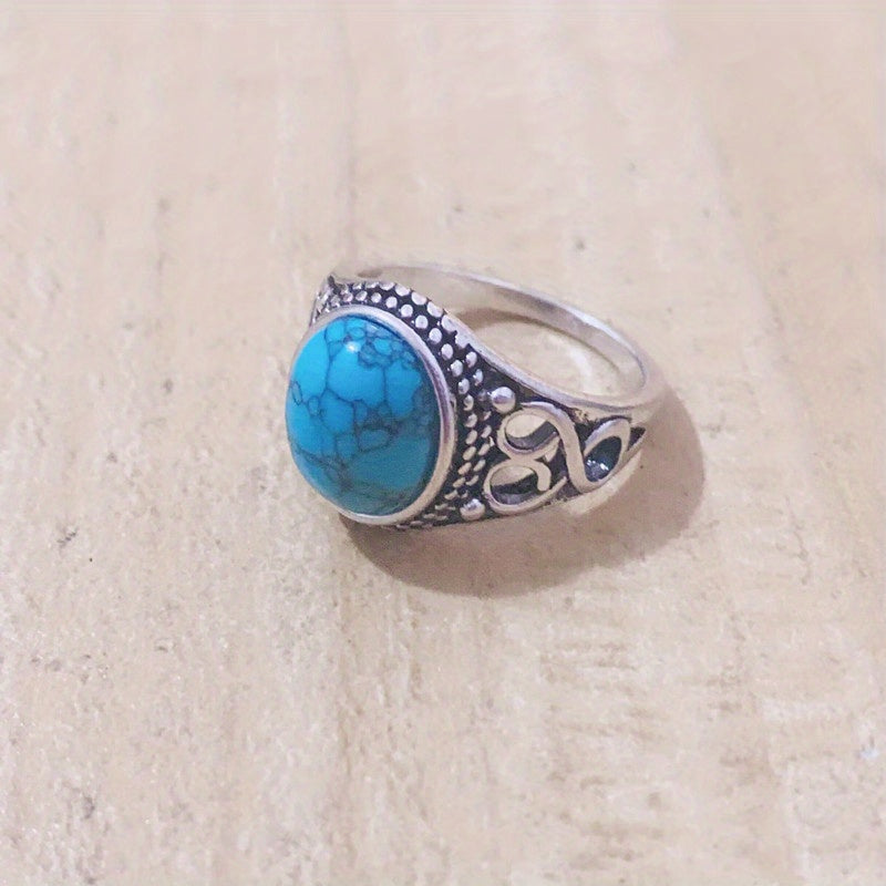 This stunning vintage engagement ring features a beautiful turquoise gemstone, making it a unique and elegant choice for your special day. Perfect for brides who love a touch of color in their jewelry collection.