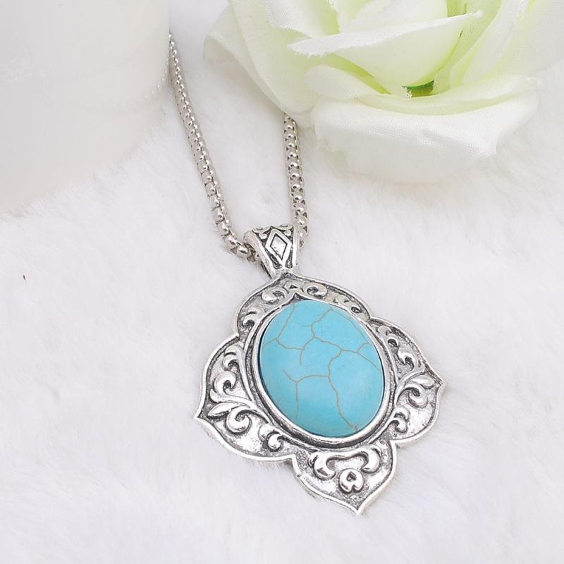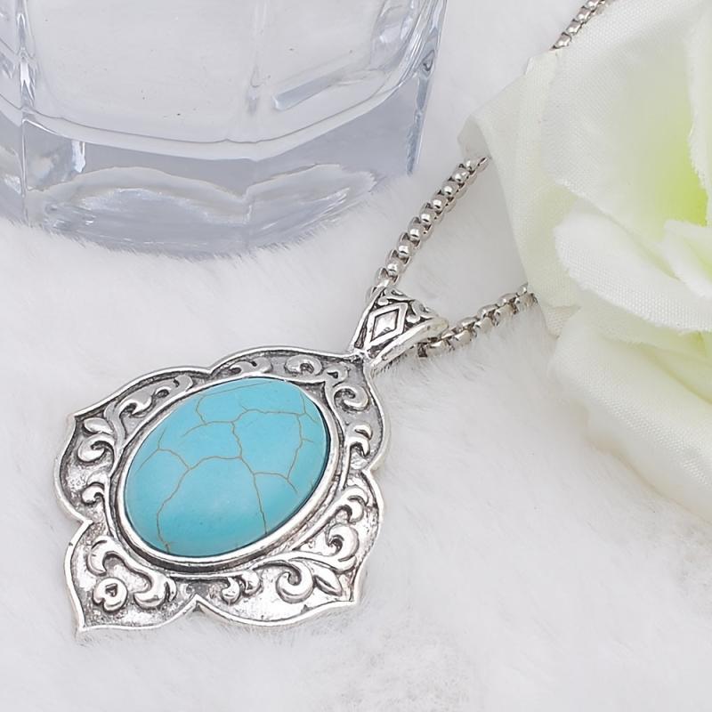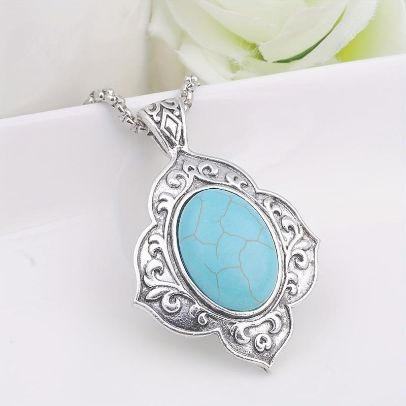 This vintage necklace features a natural turquoise stone pendant for a unique and stylish look.