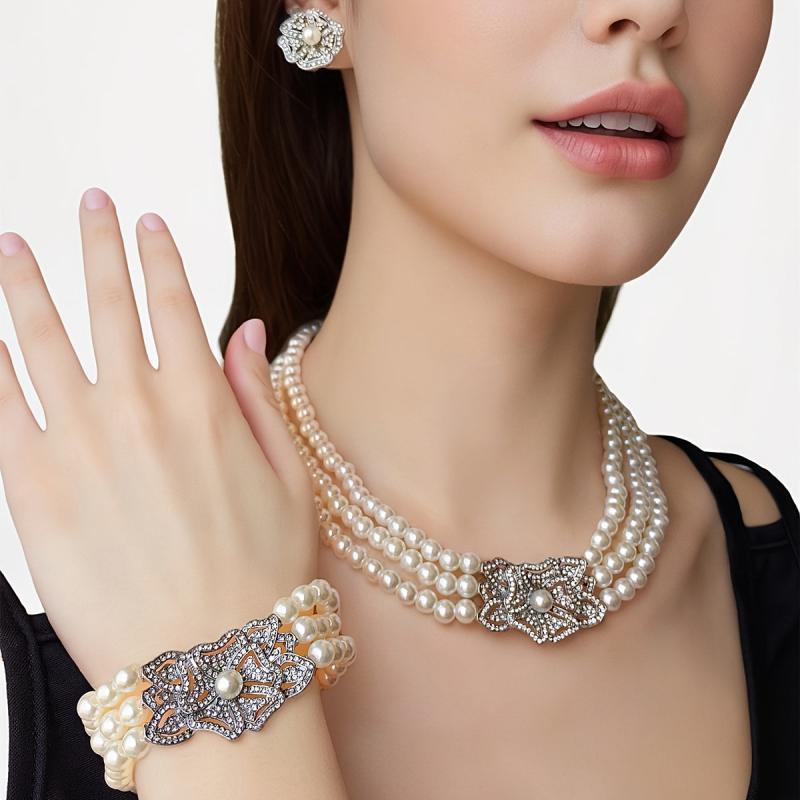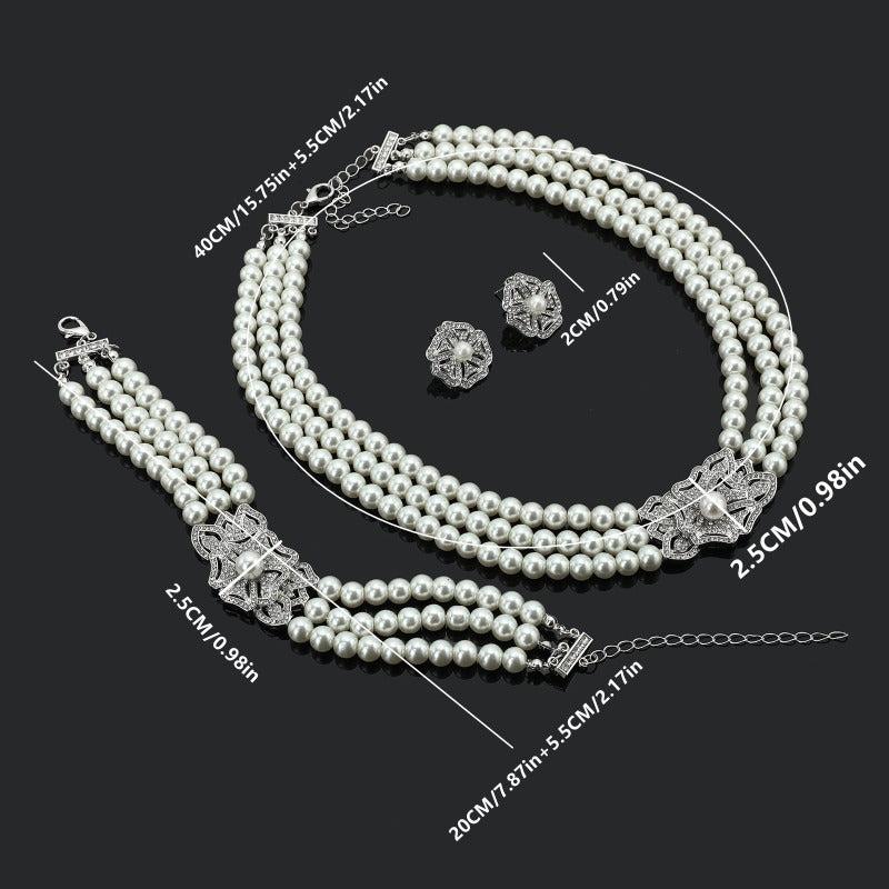 Elevate your style with this 4-piece jewelry set featuring a copper pearl bracelet, necklace, and earrings. Perfect for adding a touch of vintage charm to your ensemble.