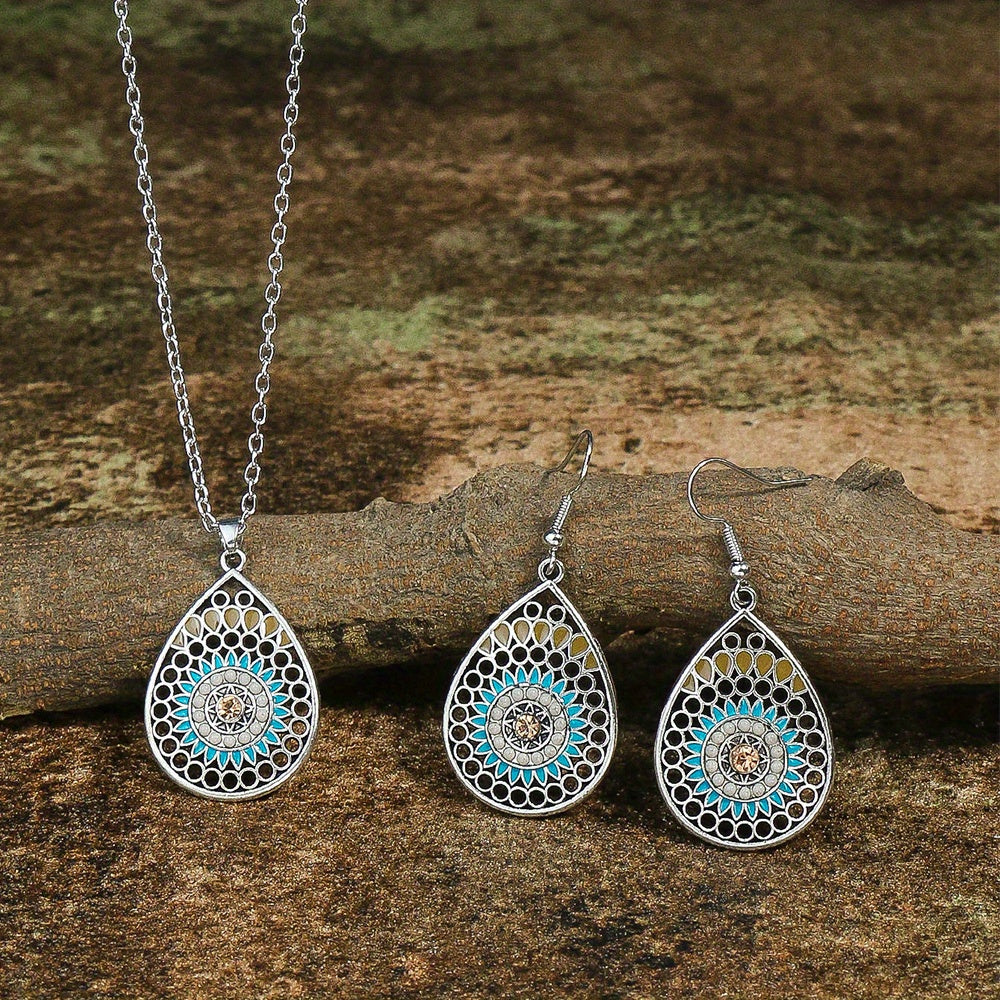 Embrace vintage elegance with this water drop shaped jewelry set featuring a pendant necklace and drop hook earrings.