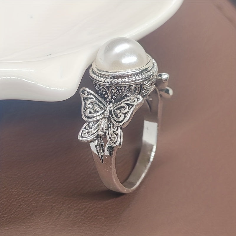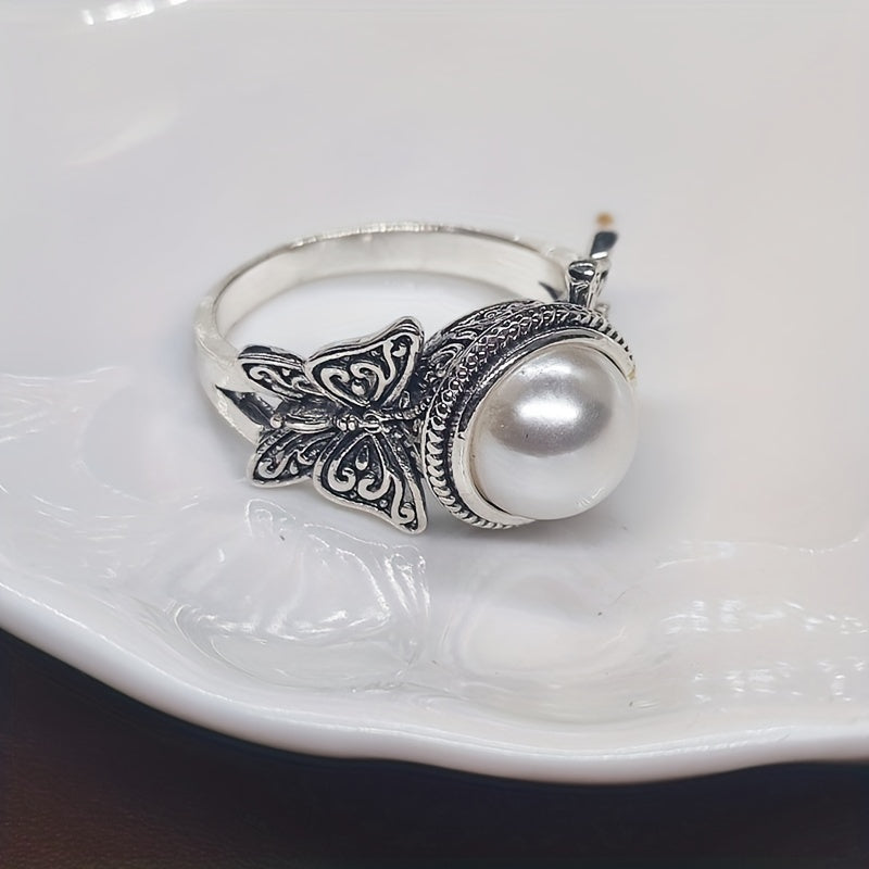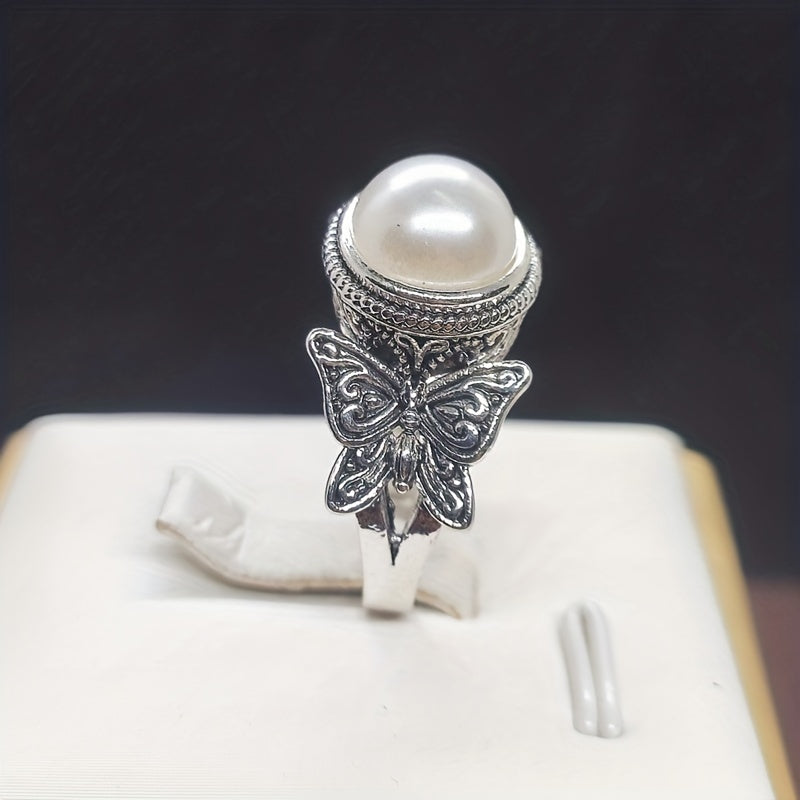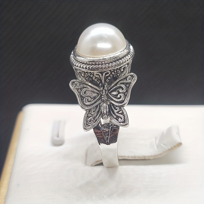 This vintage wide ring features an inlaid milky stone butterfly design that perfectly matches daily outfits. It's an ideal gift for birthdays or anniversaries.