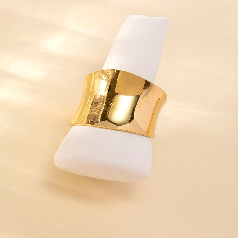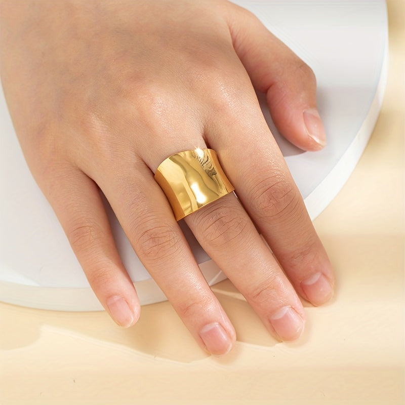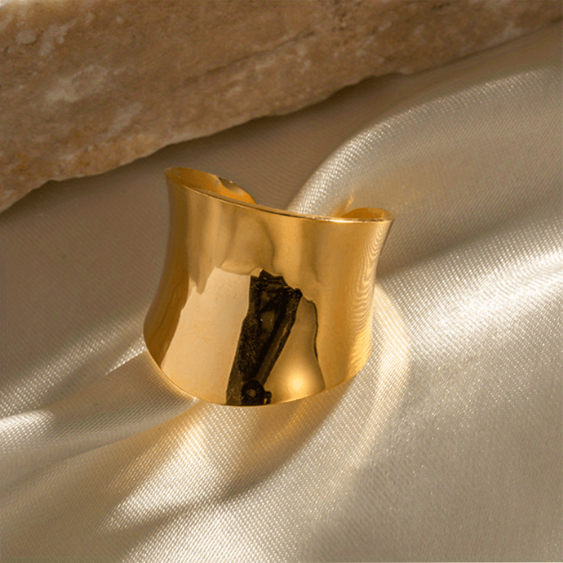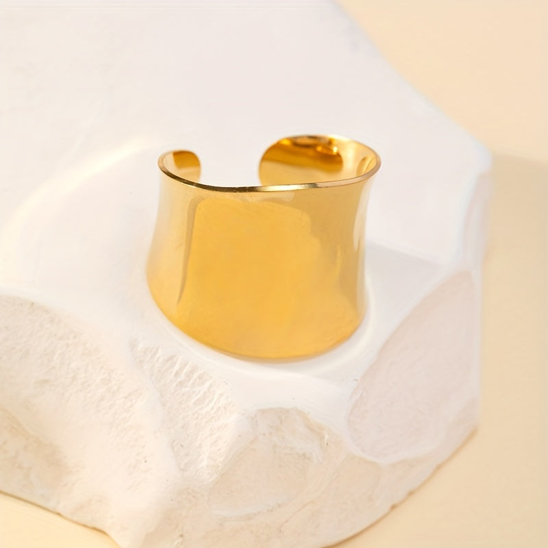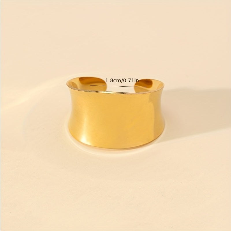 Elevate your style with this vintage wide ring made of stainless steel with 18k plating. Its cuff design is adjustable to fit different sizes, perfect for daily outfits and adding a touch of elegance to party looks.