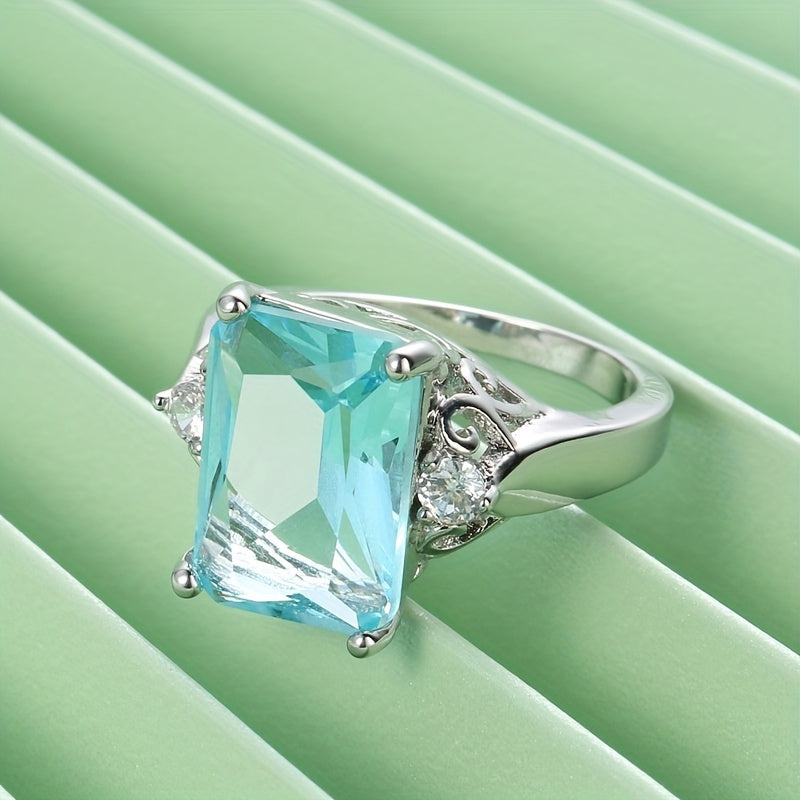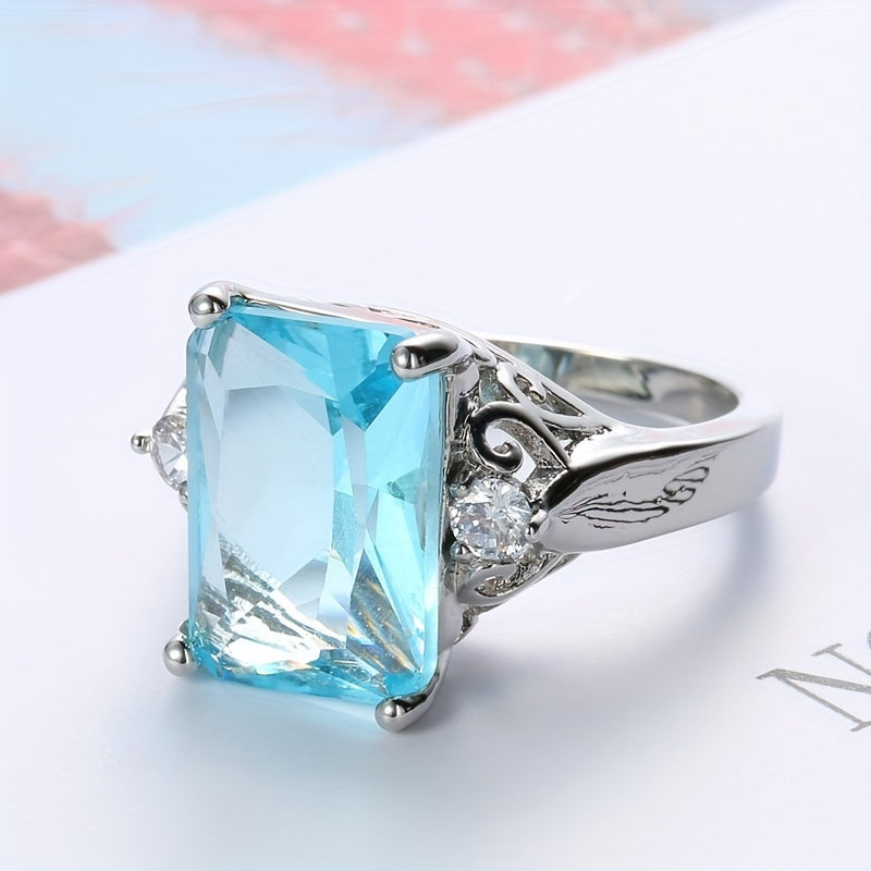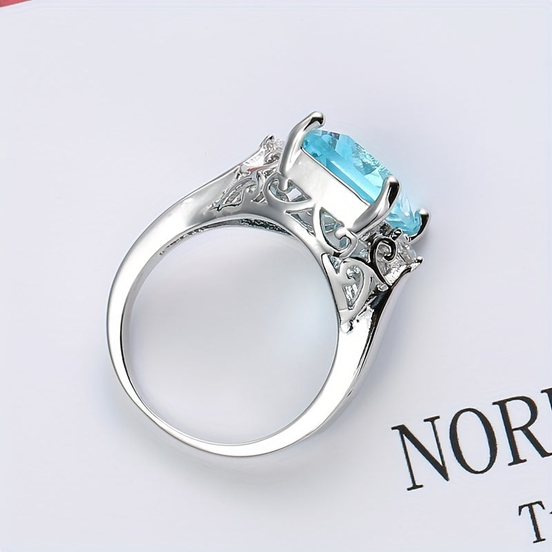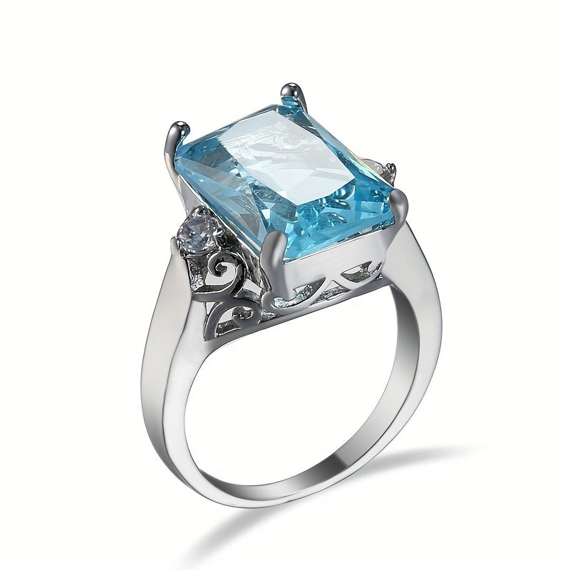 This elegant ring features a square zircon stone inlaid in a thick band with delicate flower carvings. Perfect for evening parties and makes a great birthday gift for your special girl.