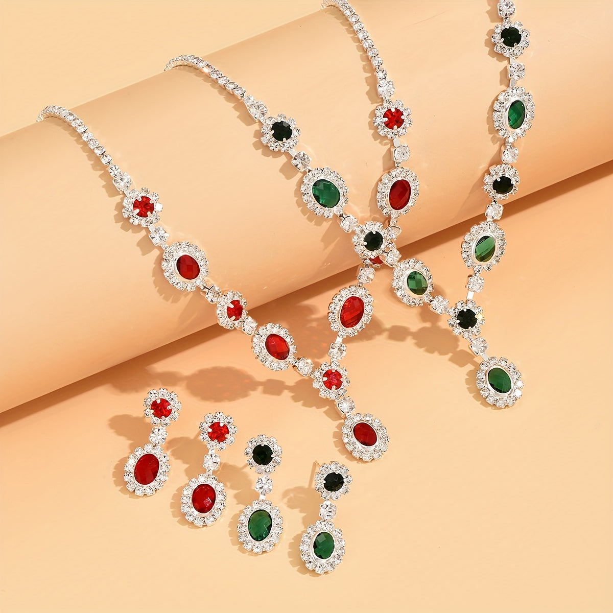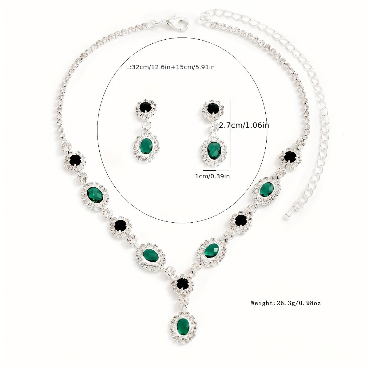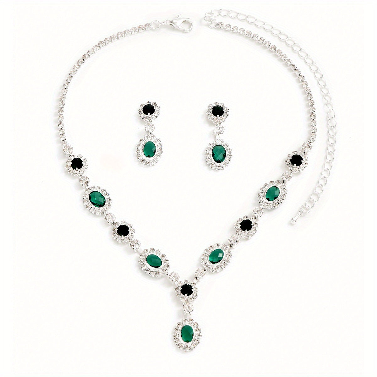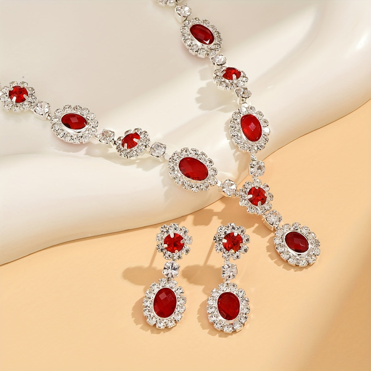 Complete your wedding look with this stunning jewelry set featuring a pendant necklace and drop earrings. The set is beautifully inlaid with synthetic gems, perfect for adding a touch of elegance to your attire for banquets and special occasions.