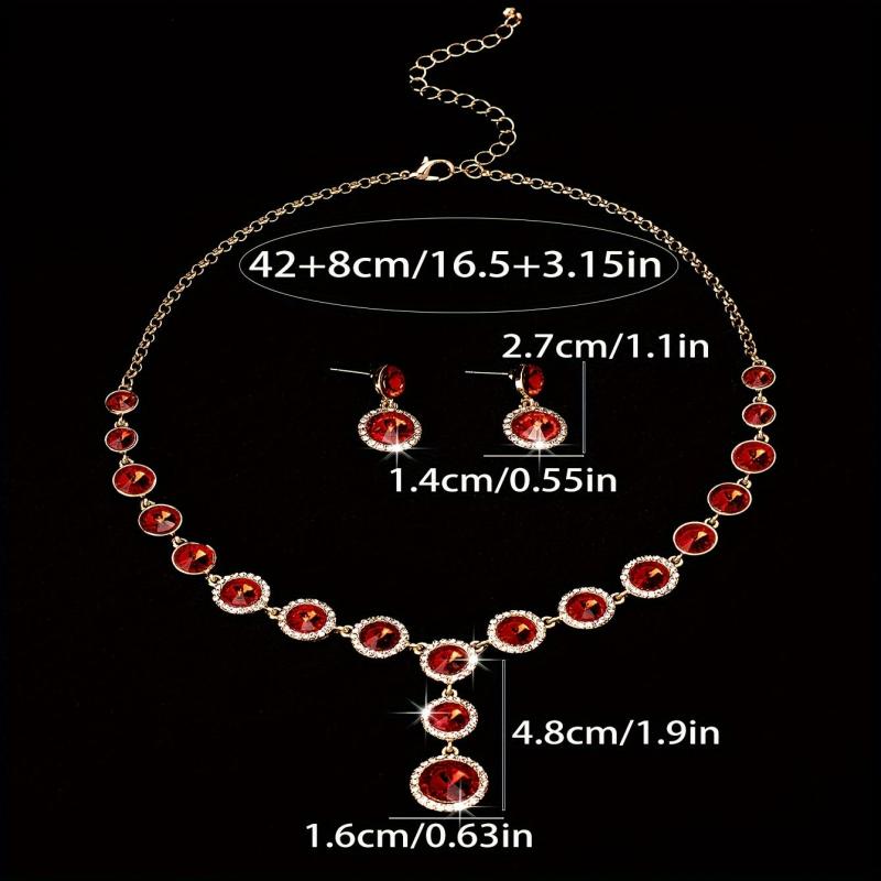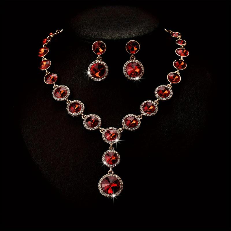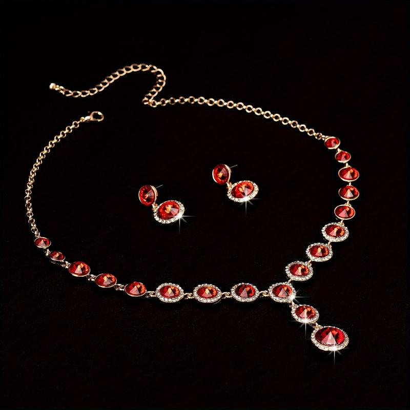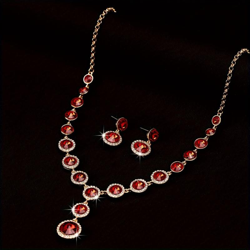 Enhance your elegance with this red synthetic gemstone jewelry set. Perfect for weddings, parties, and special occasions.