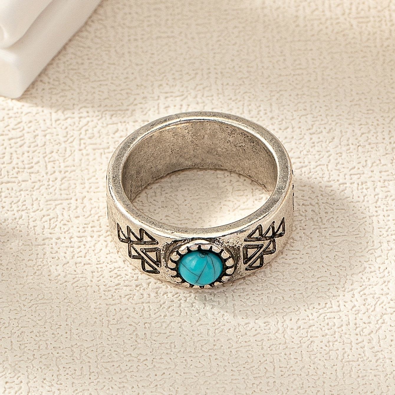 This Western-style wide ring featuring inlaid turquoise is a perfect accessory to match your daily outfits or add a touch of style to your party look.