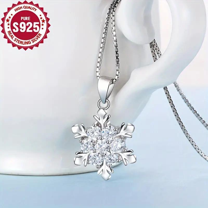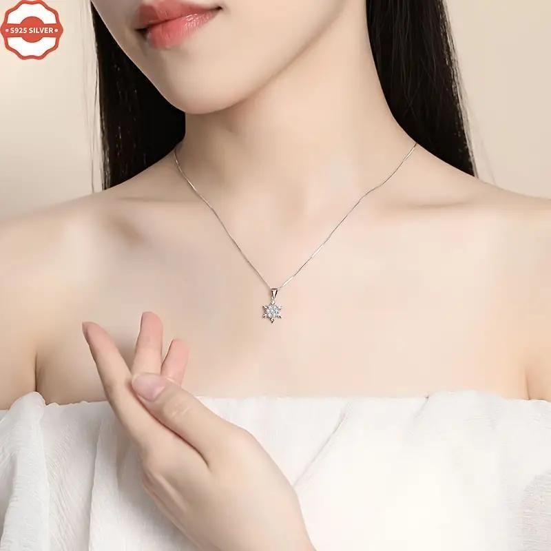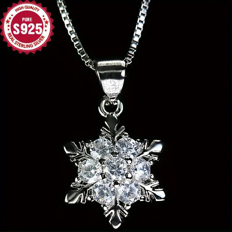 Beautiful snowflake pendant necklace made of 925 sterling silver with anti-allergy 18K gold plating. Adorned with synthetic cubic zirconia. Comes in an anti-oxidation box. Perfect for daily wear.