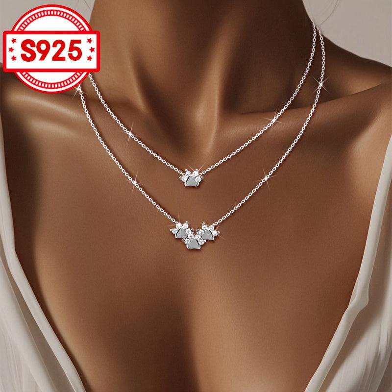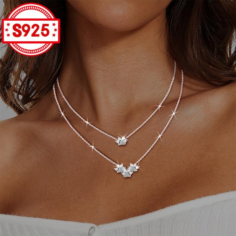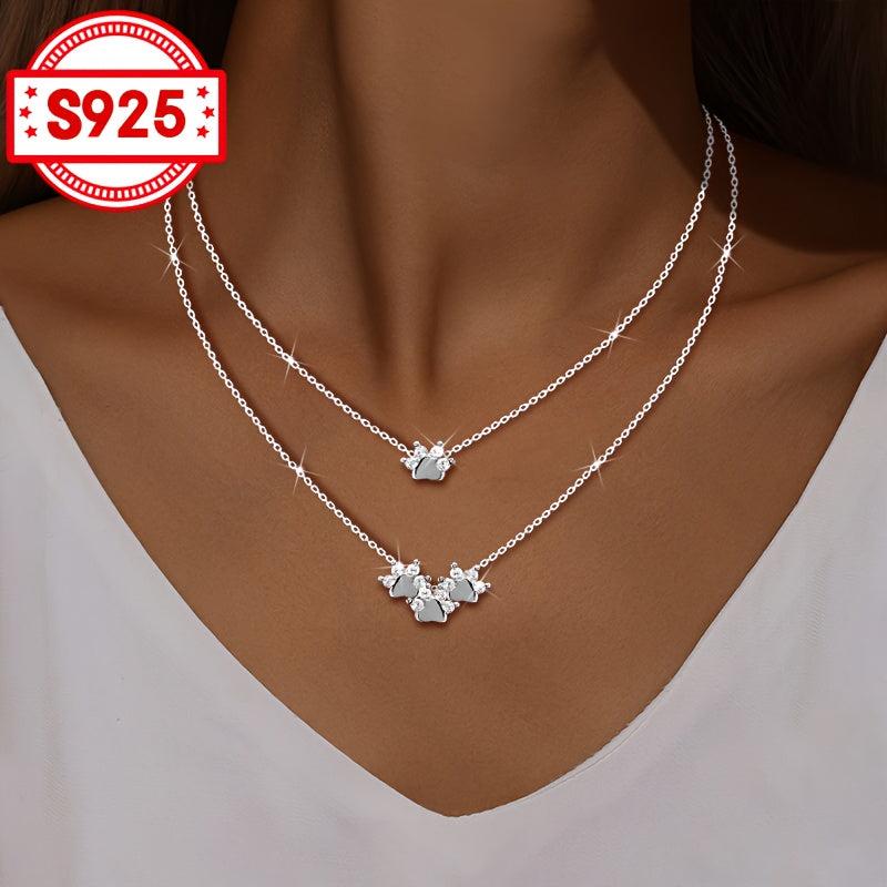 This exquisite necklace features a double layer design with inlaid synthetic zirconia for a blingbling effect. It is retractable and adjustable, made of S925 silver, perfect for weddings, banquets, parties, and daily wear.