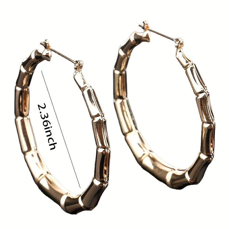 Make a statement with these exaggerated bamboo hoop earrings that are perfect for parties and special occasions.
