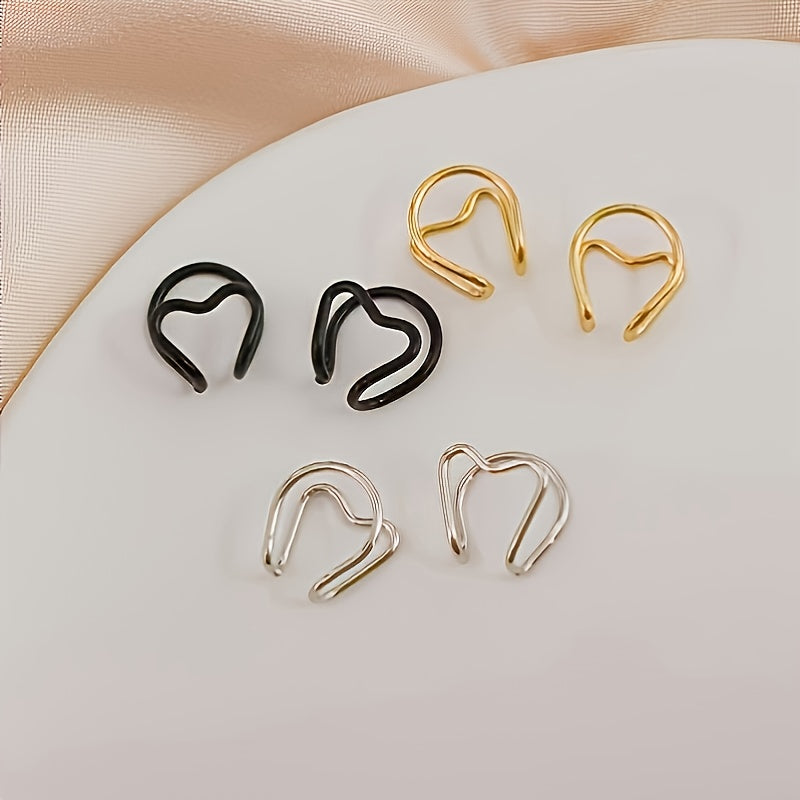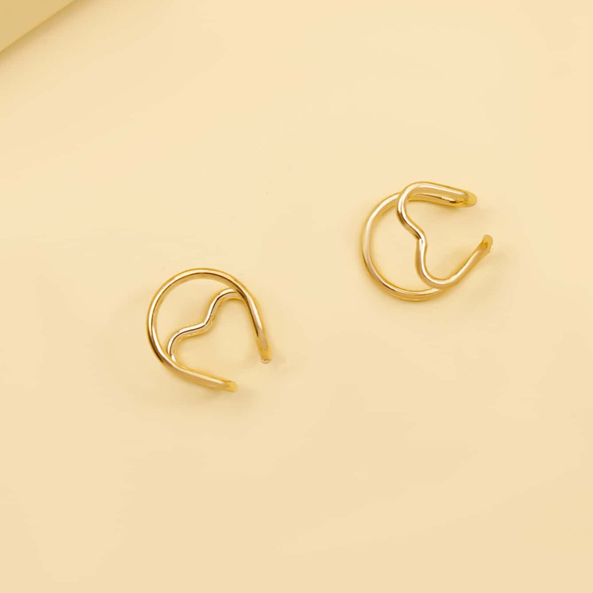 Add a touch of style to your daily look with this versatile ear cuff. Can be worn in two ways and features a geometric heart design, perfect for those without ear piercings.