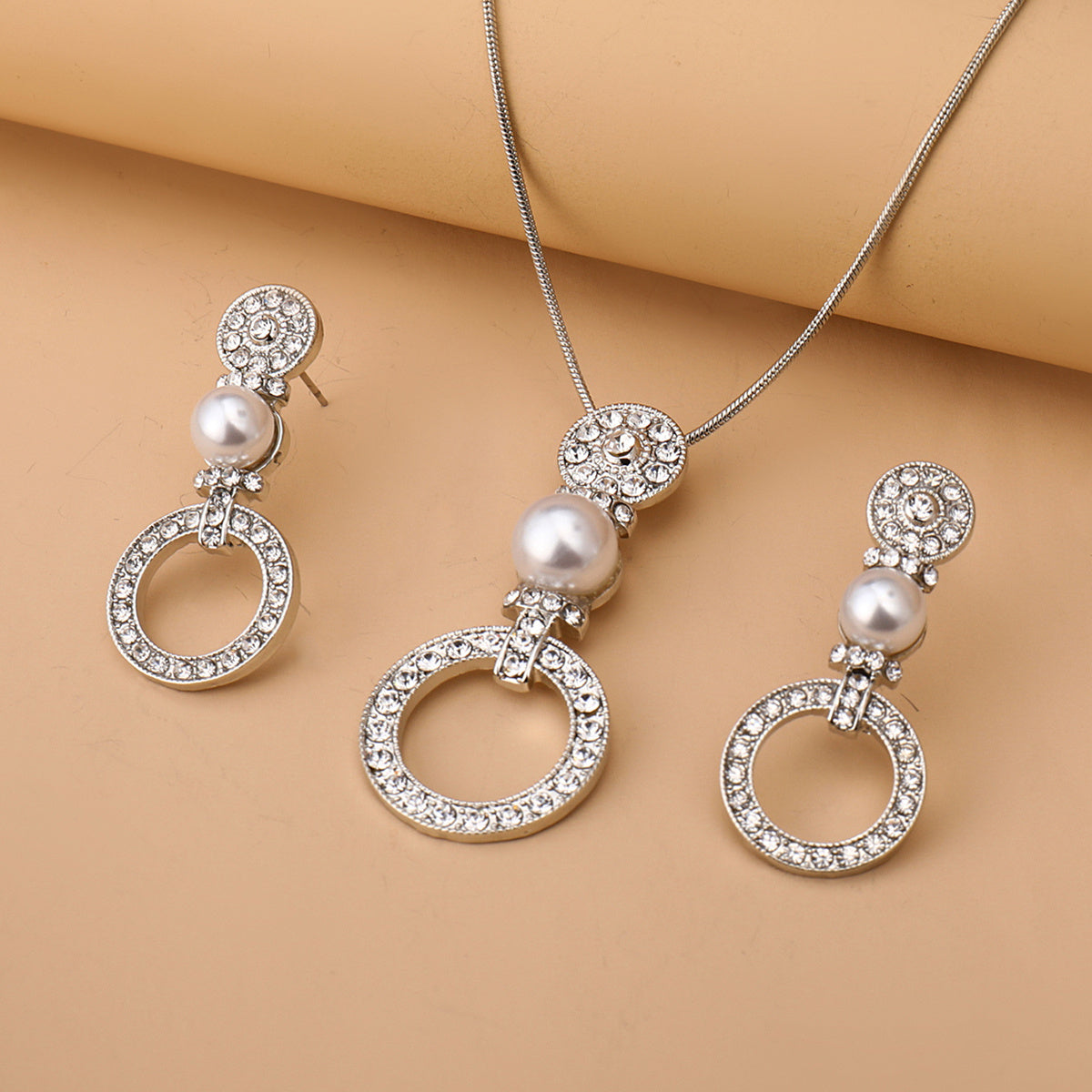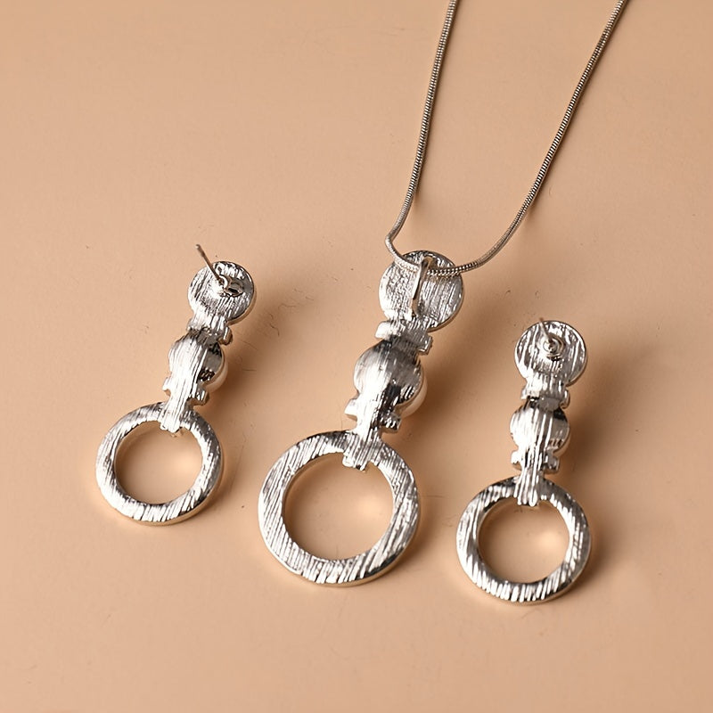 Complete your look with this fine jewelry set featuring pearl and rhinestone details. Perfect for birthdays and night parties.