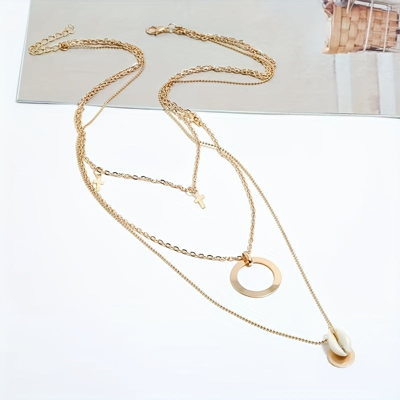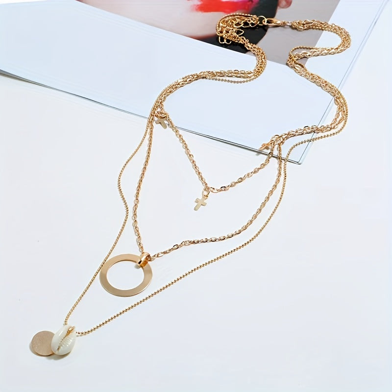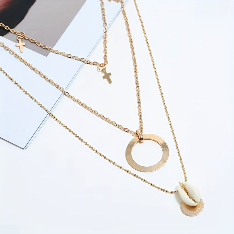 Add a touch of elegance to your look with this beautiful shell pendant necklace. Made of high-quality alloy, this necklace features a cross disc design that adds a unique charm to your outfit.