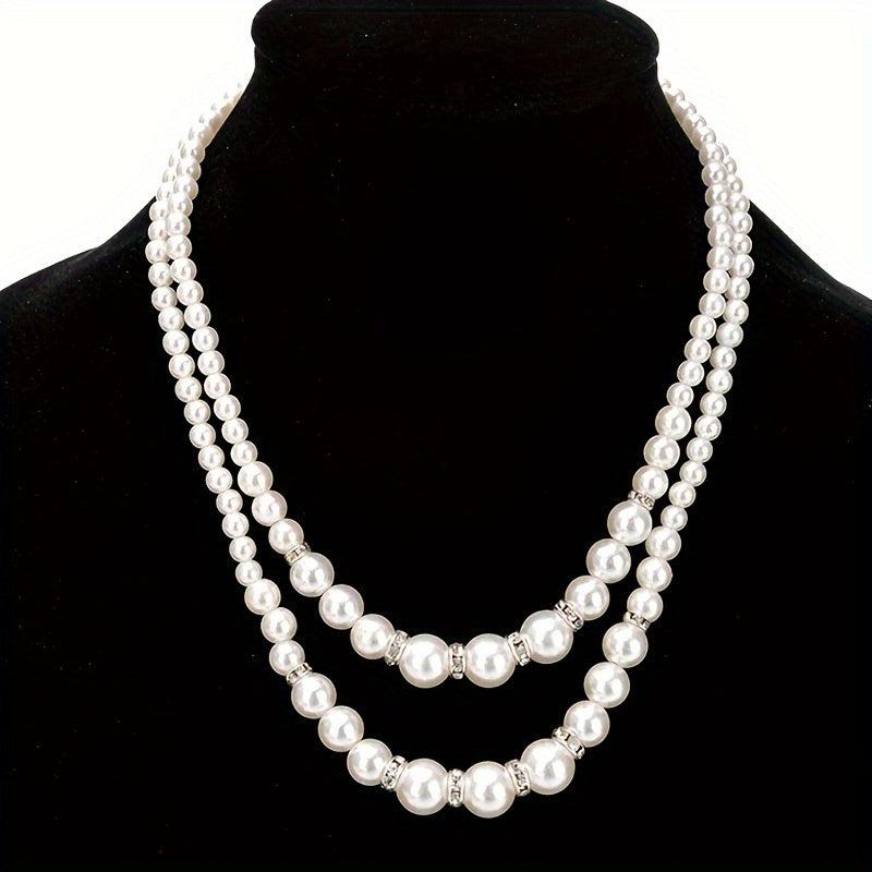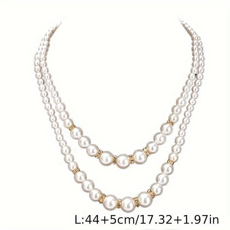 Elevate your look with this stylish double layer necklace adorned with rhinestones and artificial pearls. Perfect for parties or year-round wear.