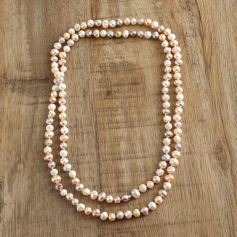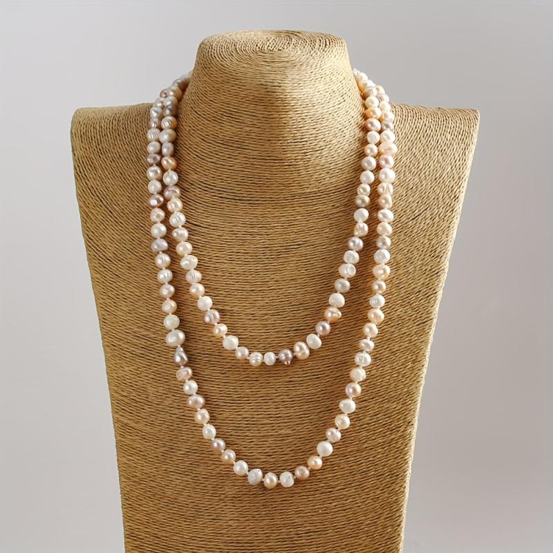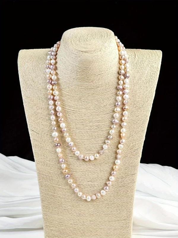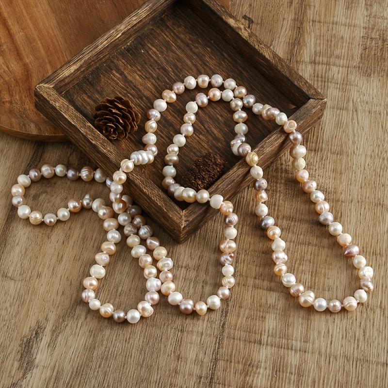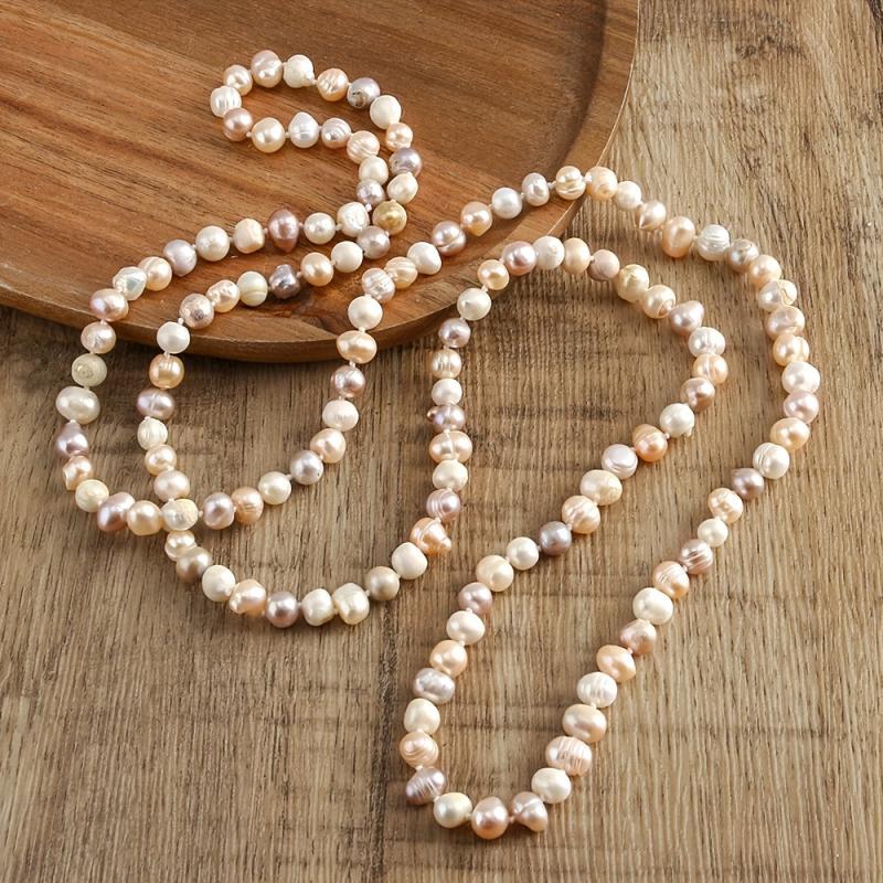 Elevate your daily wear with this versatile and natural irregular freshwater pearls long necklace featuring a unique purple mixed knot design.