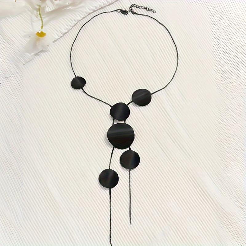 This Y shape necklace features a minimalist design with a geometric circle pendant and 3 interconnected charms. Perfect for daily wear and parties year round.