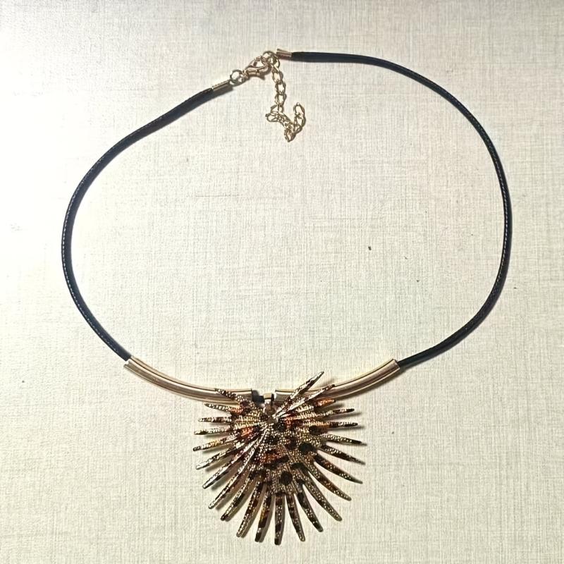 Golden bold statement jewelry for casual attire. Versatile layering piece that is durable year-round.