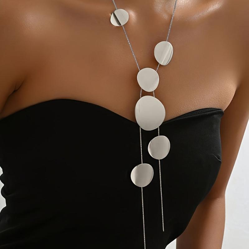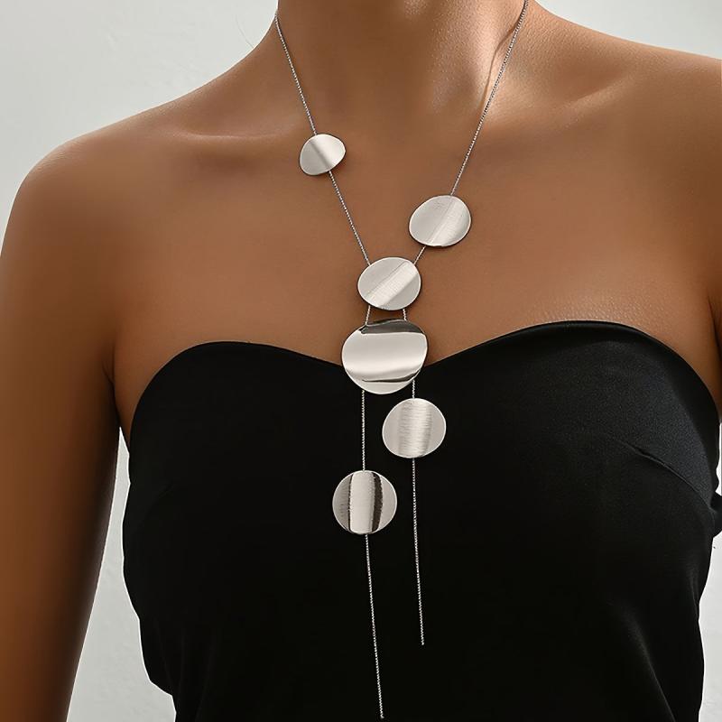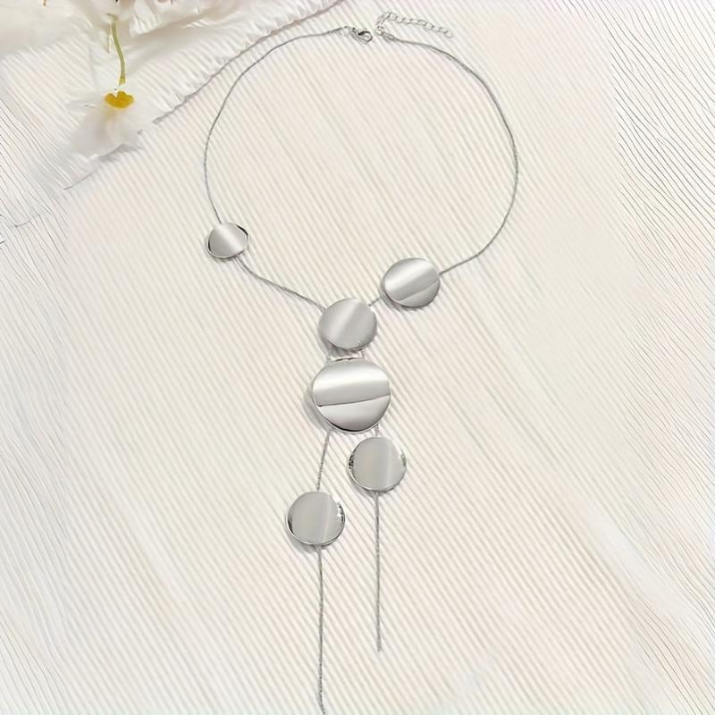 Elegant pendant necklace with a geometric round design, perfect for parties and formal events. Features a thin snake chain for a sleek look.