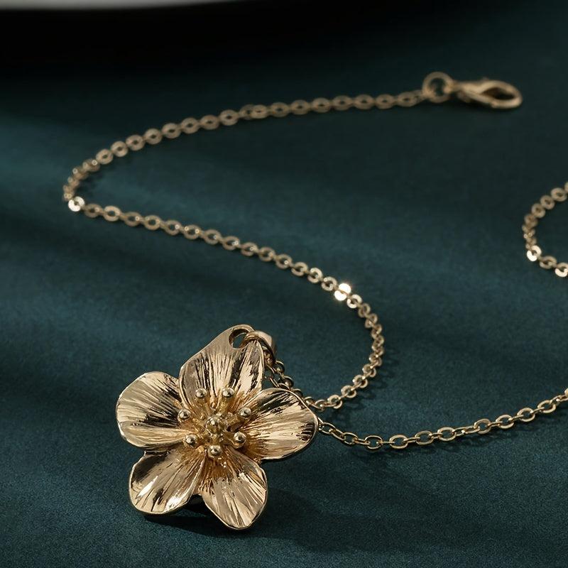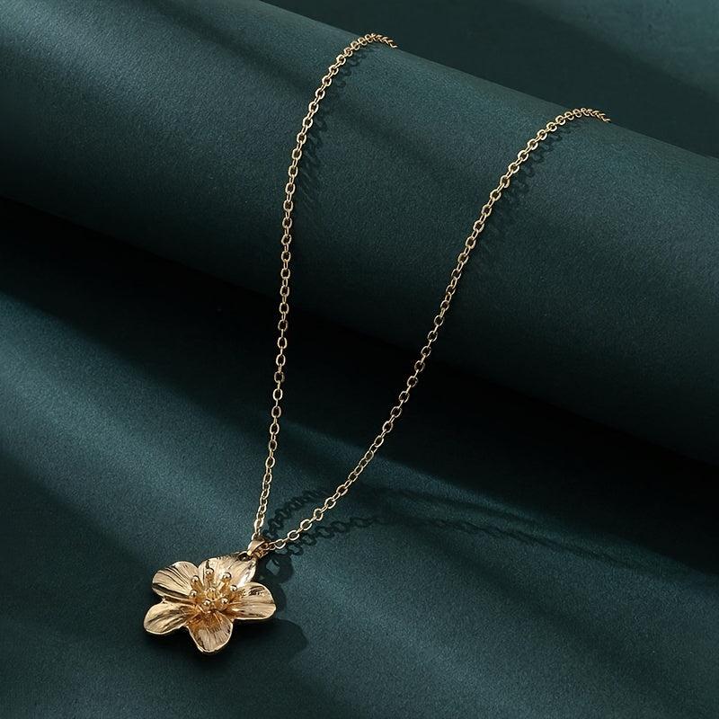 This exquisite necklace features a golden tone flower pendant on a delicate chain, perfect for weddings, parties, and vacations. A versatile year-round accessory that adds elegance to any outfit.